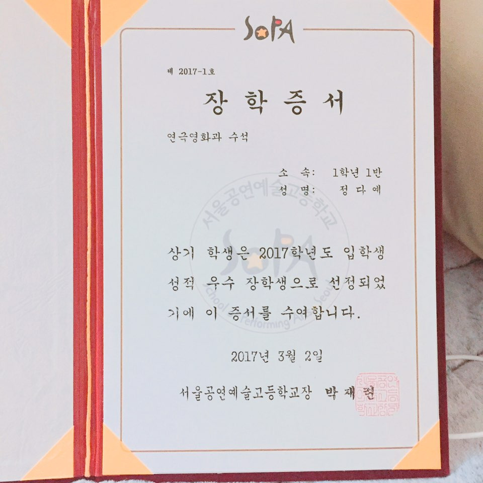 졸업식에 봉사상을 받았다
