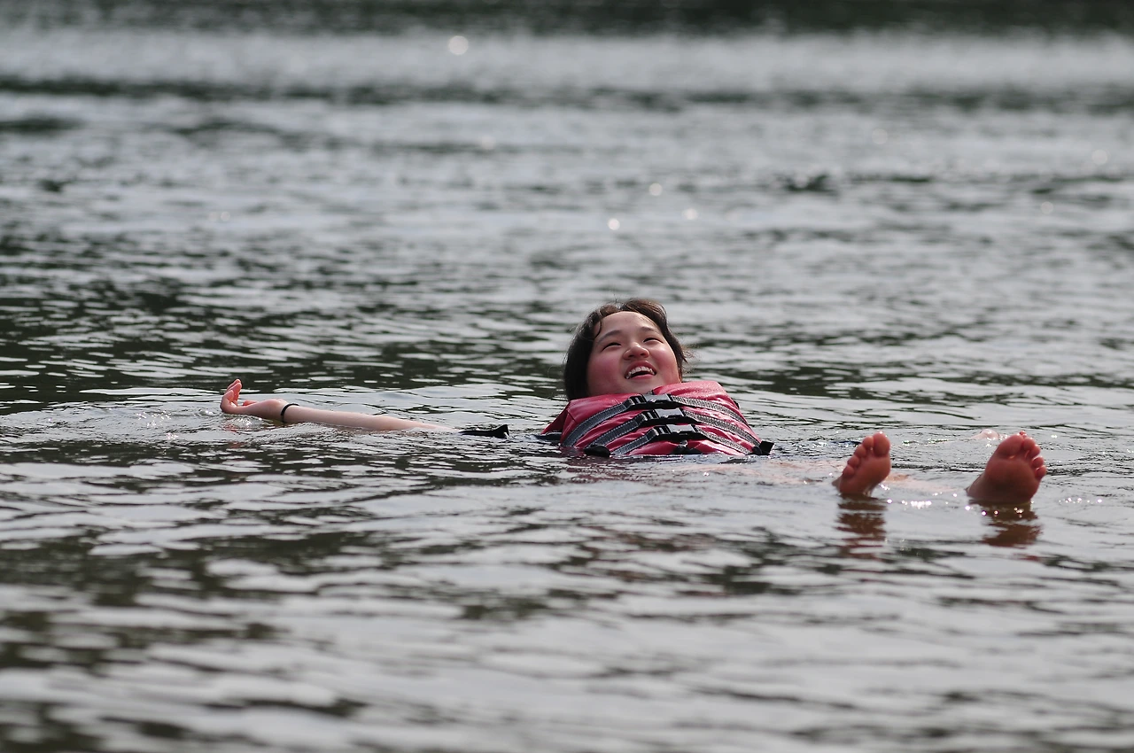 원래 수영금지구역이라 아저씨가 보트를 정리하는 동안만 있기로 허락을 받았다