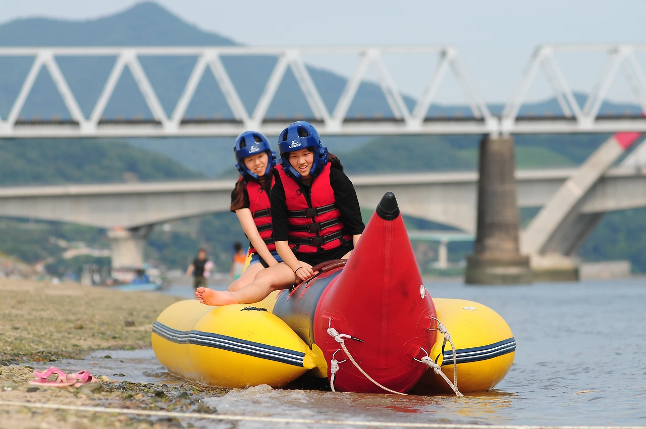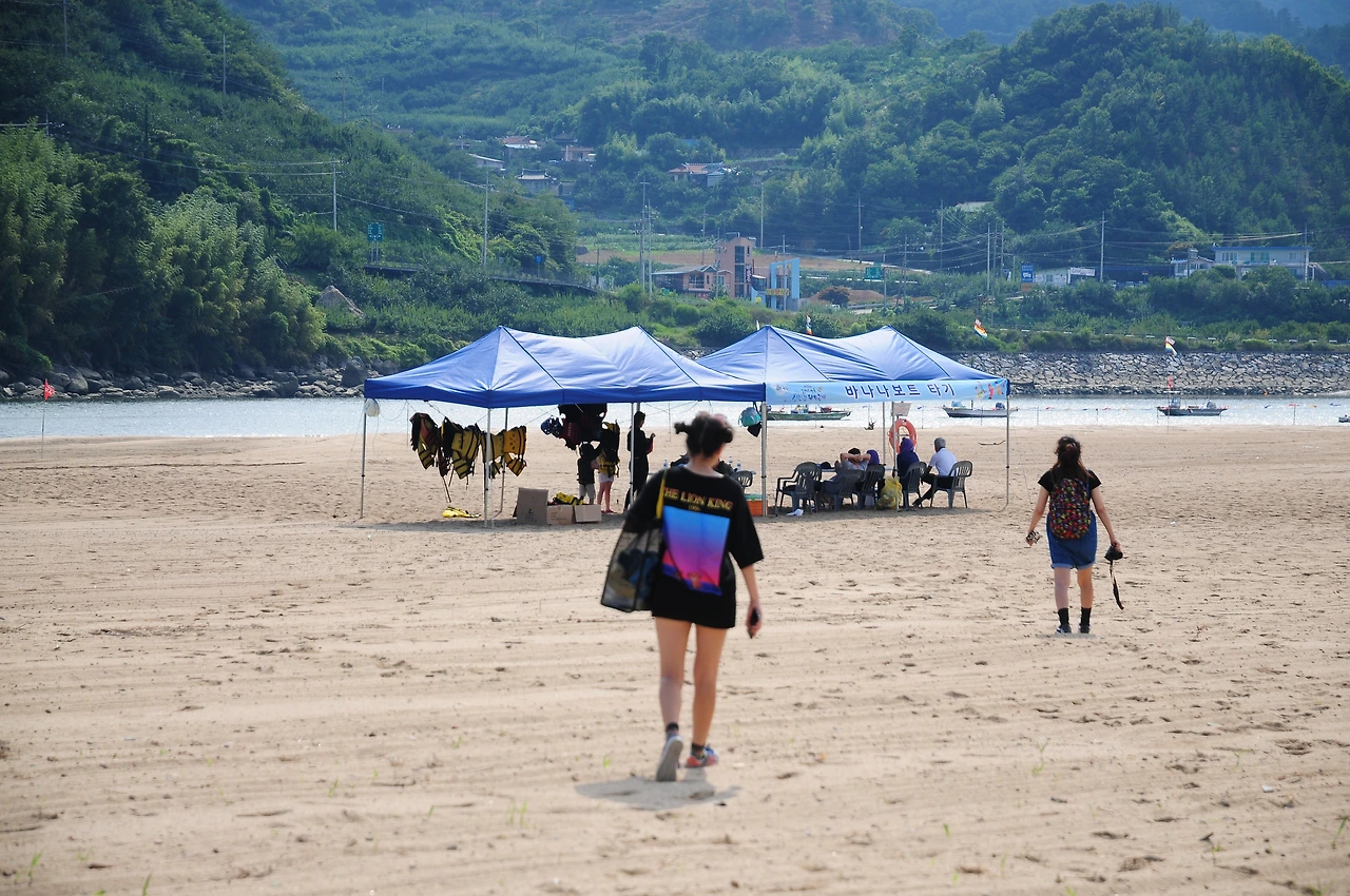 여기저기 검색을 하다 재첩 축제장에 바나나보트 타는 곳도 있다기에 우린 일단 가보기로 했다