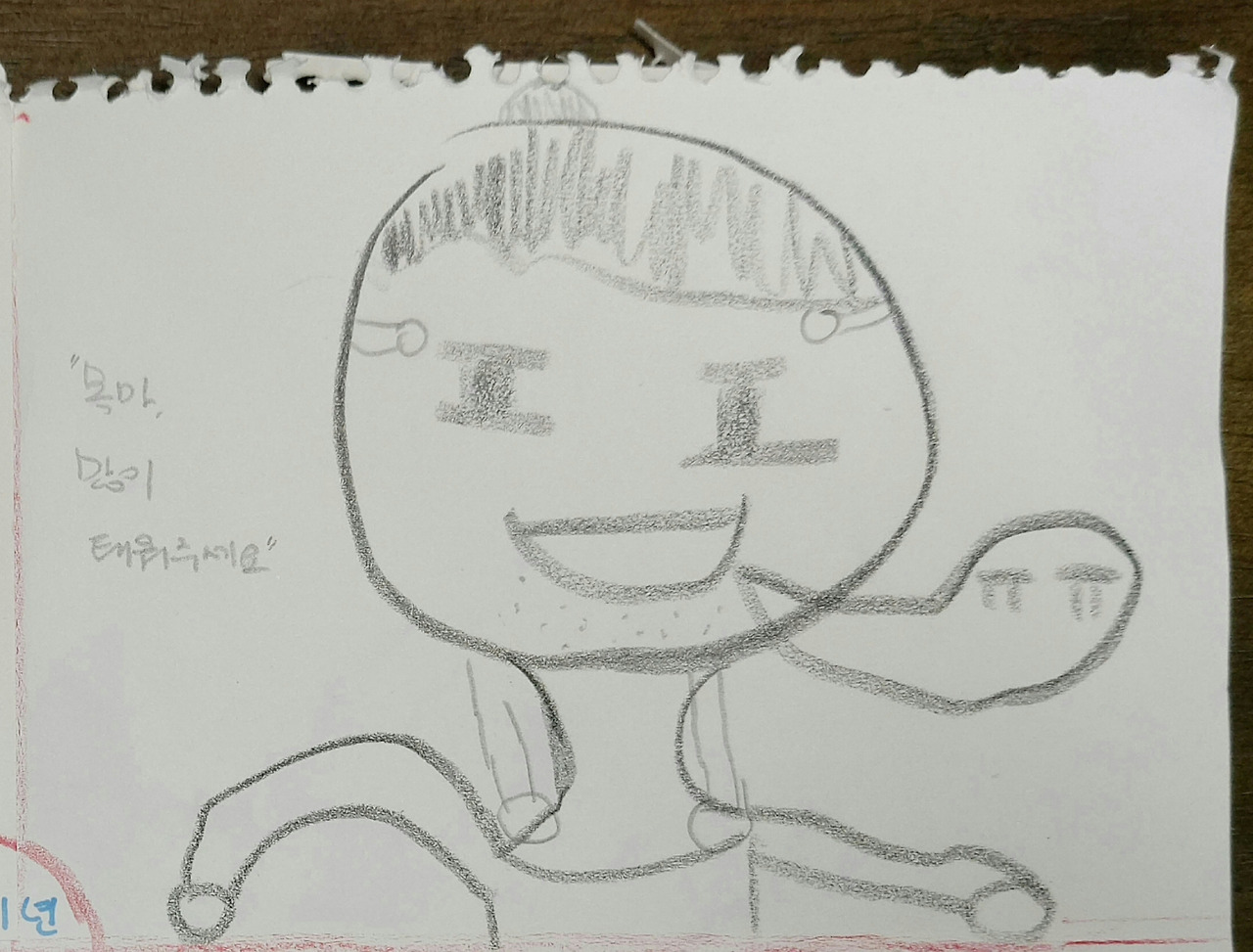 7살 귀요미는 자신의 모습 칸에 칼 3개를 그린다.