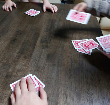 잠시 후, 테이블 위에 놓여있던 카드(아까 놀던 원카드)를 7장 정도 손에 들고는 내게 묻는다.