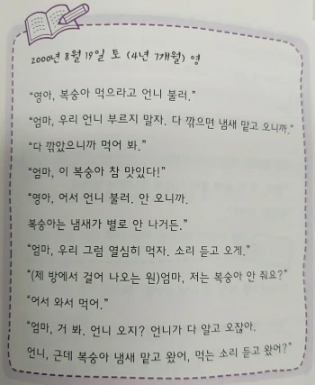 말일기는 아이의 입에서 나온 말이나 아이와 나눈 대화를 그대로 기록하는 일기다.