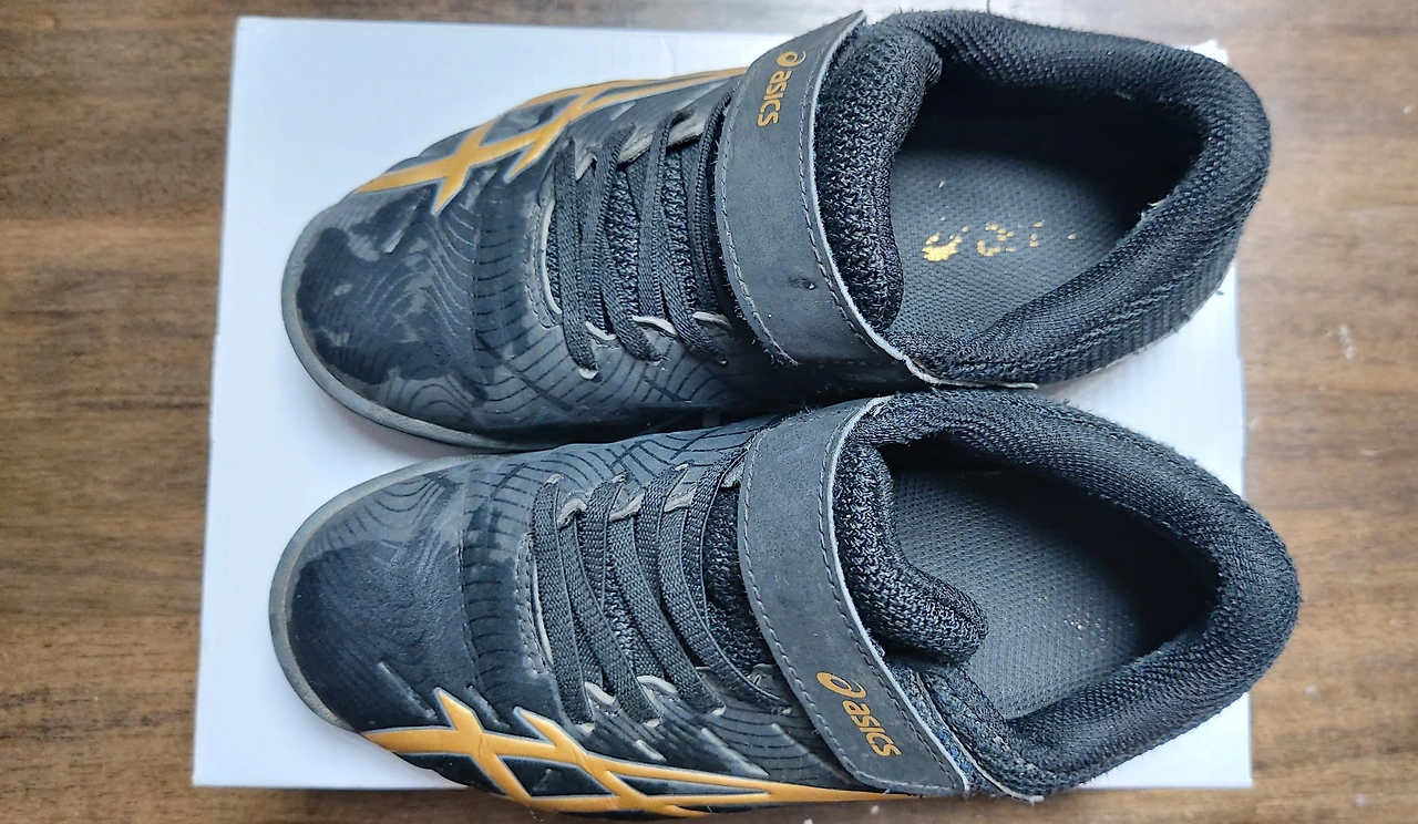 손자의 운동화를 깨끗이 닦는다.