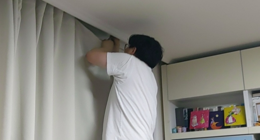 커튼봉 설치중인 남편커튼을 달고 있는 그의 뒷모습을 보고 있노라니 갑자기 뭉클하다.