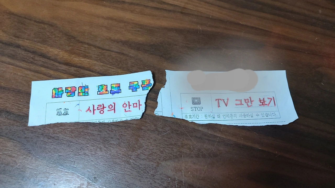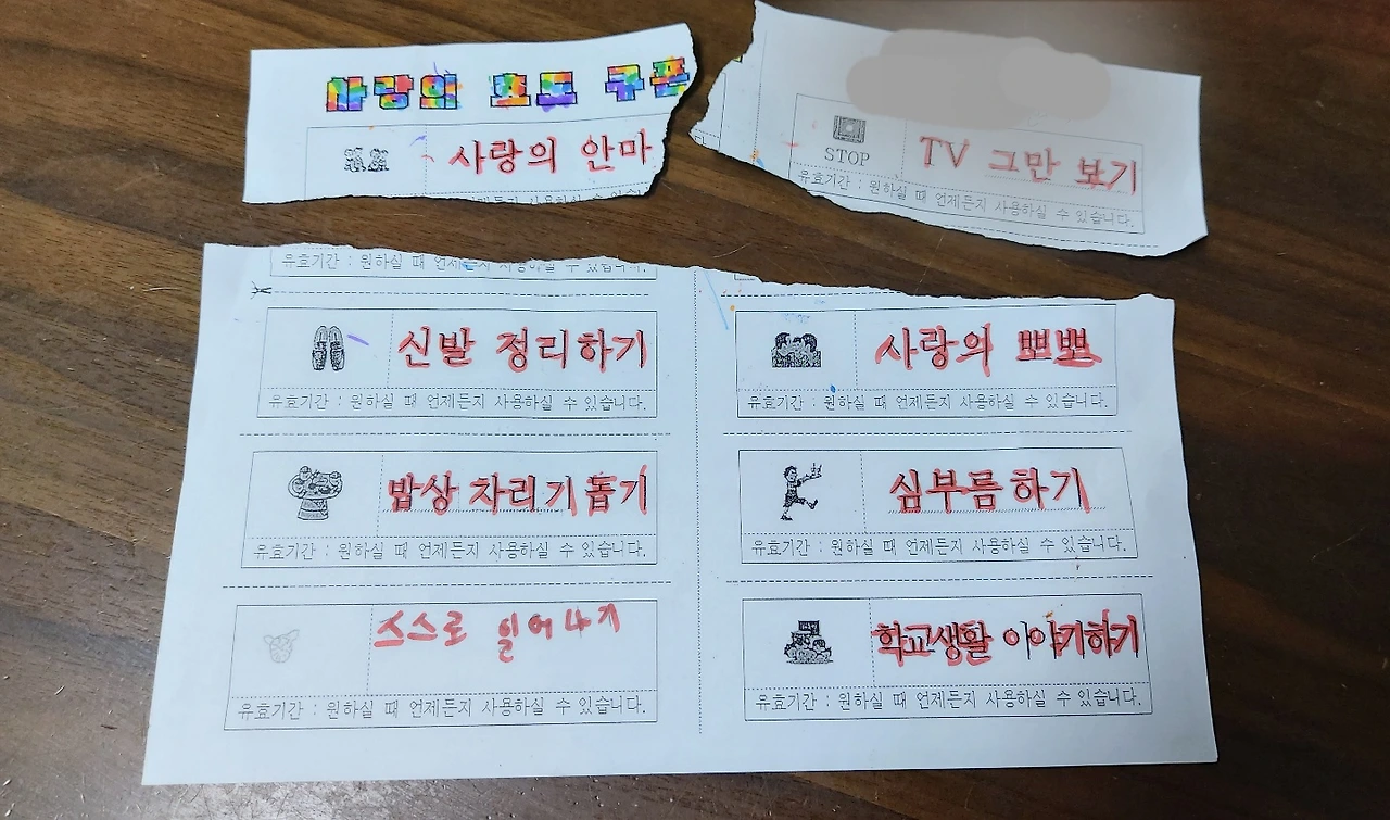 하기 싫어서 찢어버린 쿠폰 (2장)