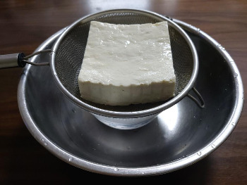 채반 위에 스테인리스 거름망을 걸쳐놓고 그 안에 두부를 올려두었다. 저편에서 내 모습을 보고 계시던 엄마가 말씀하신다.