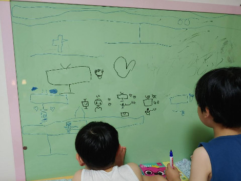 (좌) 반짝이는 그림으로 생각을 표현한다 / (우) 귀요미는 피아노를 통해 감정을 표현한다