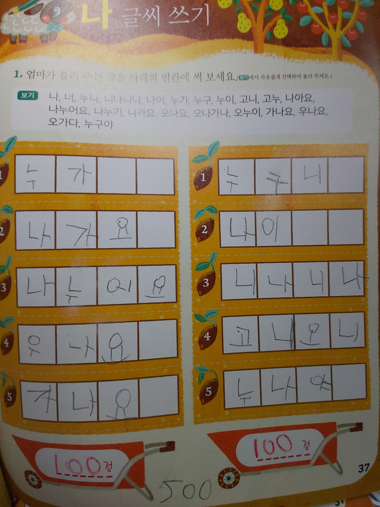 (좌) 반짝이는 100점이 중요함 /(우) 귀요미는 글자의 비율을 중시함