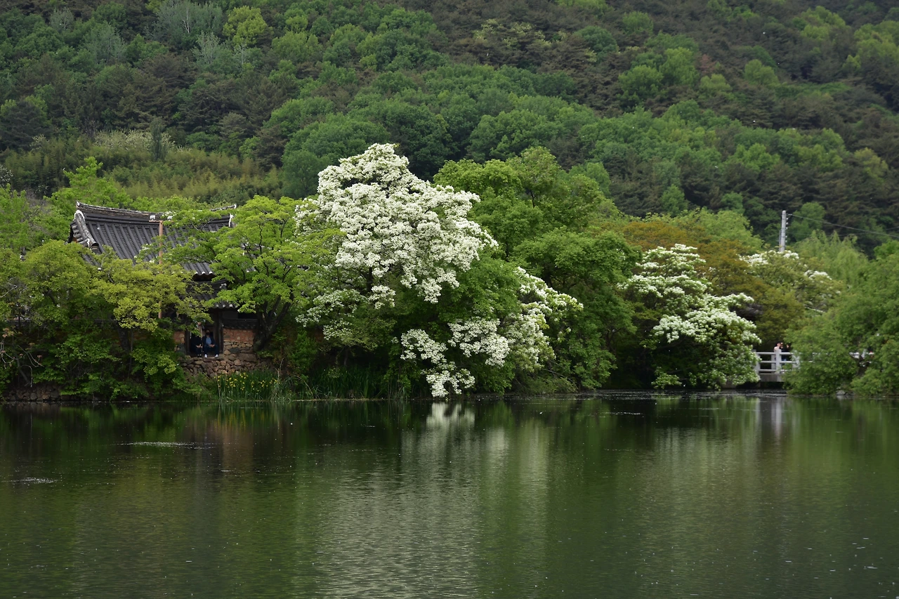 밀양 위양지의 하얀 이팝나무 꽃