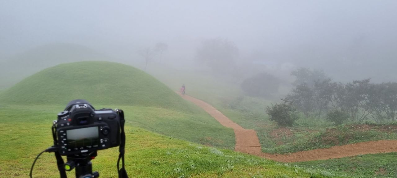 비가 오면 우산을 쓰거나 후드 바람막이를 쓰고 공원에서 운동을 하거나 산책을 한다.