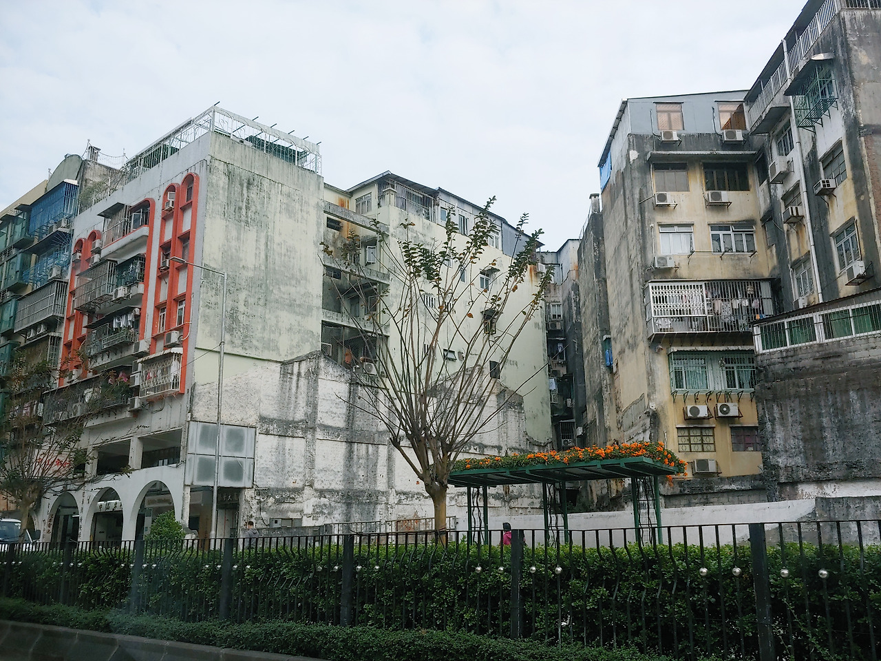 숙소에 짐을 풀고 입고 있던 겨울옷을 걸어둔 후 긴 팔 셔츠에 반바지를 꺼내 입었다. 한국에서는 초가을 날씨라는데 느낌상으로는 그보다 훨씬 덥다. 습도가 75%, 기온은 섭씨 19에서 21도를 오간다. 마카오에는 비 오는 날이 많다고 해서 우산도 가져왔는데 다행히 날씨가 맑다. 구름이 많이 끼어있고 주위가 온통 공사 중이라 공기가 깨끗하지는 않았다. 셀카봉을 잃어버린 탓에 핸드폰만 들고 길을 나섰다.