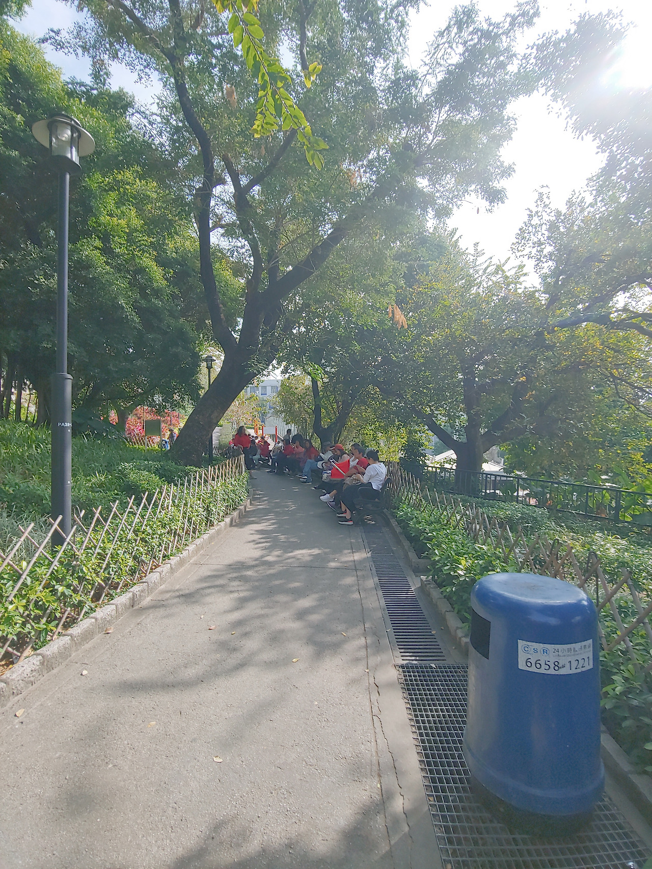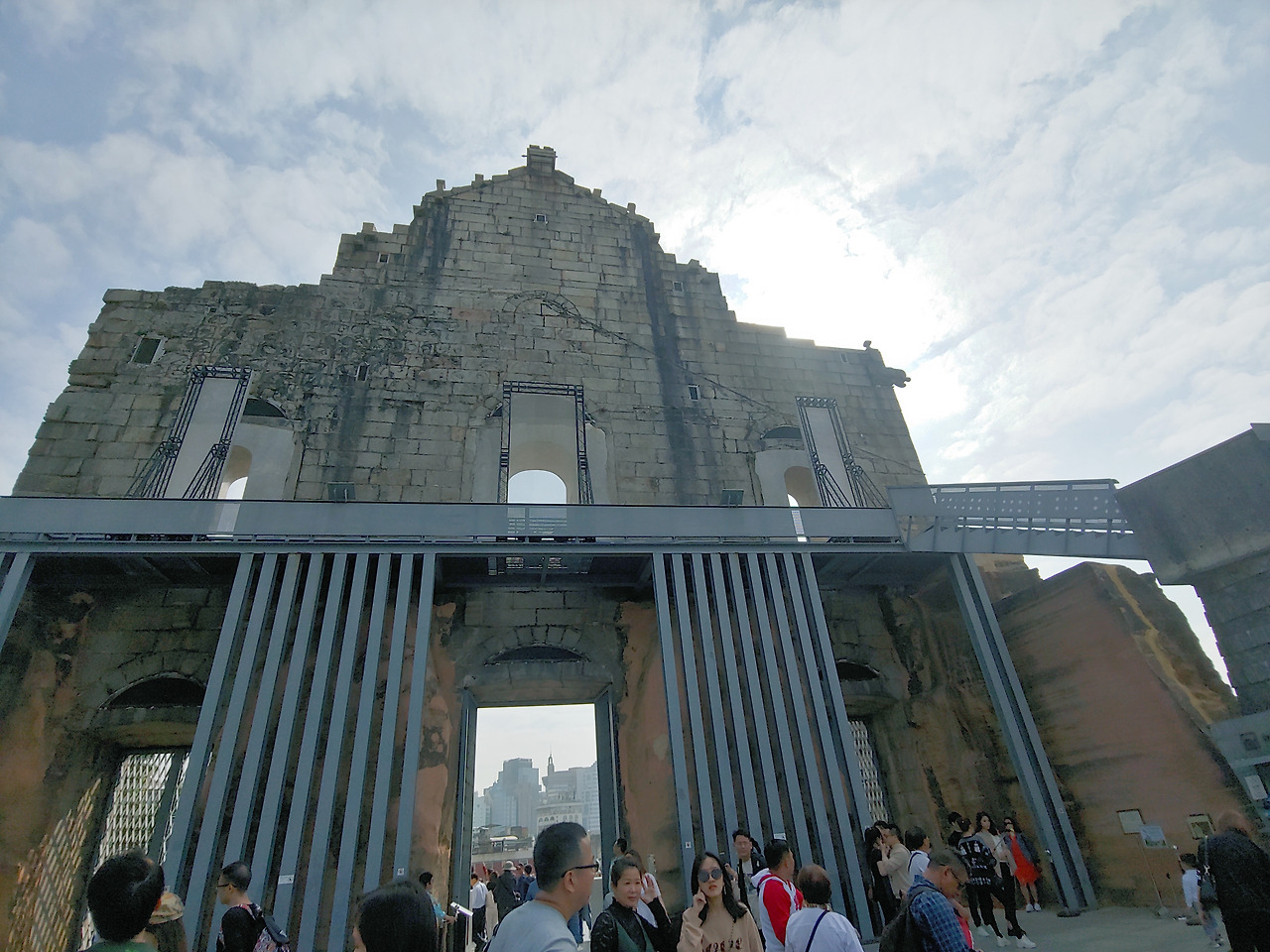 성 바울 성당 앞이 관광객으로 북적인다. 우리는 가운데 있는 문을 통과해 성 바울 성당 뒤편으로 이동했다. 성당은 거대한 벽 하나로 화려한 앞면에 비해 뒤쪽은 철제 구조물이 함께 서있다. 굳이 이름을 붙이자면 '아름다운 문화유산의 앞과 뒤' 정도 될까. 그리고 그곳에도 관광객들이 넘쳐난다. 마카오가 세계적 관광지라는 것을 감안해 보면 놀랍게도 서양인들은 거의 보이지 않았다. 관광객으로 보이는 이들은 대부분 검은 머리, 검은 눈동자의 아시안들이었다. 대부분 중국어를 쓰는 중국인들 같은데 한국인들도 많다. 젊은 커플들이나 가족여행 오신 일행도 많이 보인다. 덕분에 내가 아직 한국에 있는 듯한 착각이 든다. 늦 봄처럼 따뜻한 날씨, 나뭇잎이 무성한 공원에는 한가롭게 벤치에 앉아 있는 사람들도 많이 볼 수 있었다.