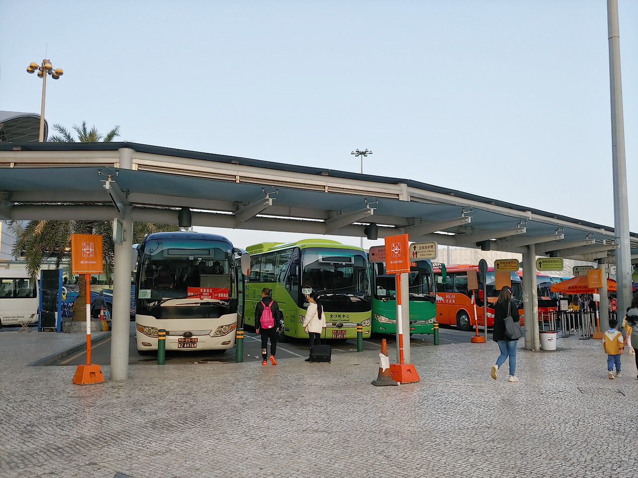 국경 관문 바로 앞에는 공용 버스 승차장이 있다. 마카오 국제공항 앞에서 처럼 호텔 셔틀버스가 들어오고 나간다. 그곳에서 우리는 마침내 우리가 묵는 호텔 셔틀버스를 발견했다. 냉큼 줄을 서고 버스에 올라탔다. 우리가 묵은 호텔까지는 호텔 셔틀버스로 겨우 15분 정도 걸린다. 아무리 명소를 구경하며 걸어왔다지만 걸어오는데 거의 세 시간이나 걸린 것과 비교해 보면 정말 큰 차이가 아닐 수 없다. 숙소에 도착하니 오후 여섯 시다. 샤워를 마치자마자 침대에 누웠는데 나도 모르게 잠이 들어버렸다.