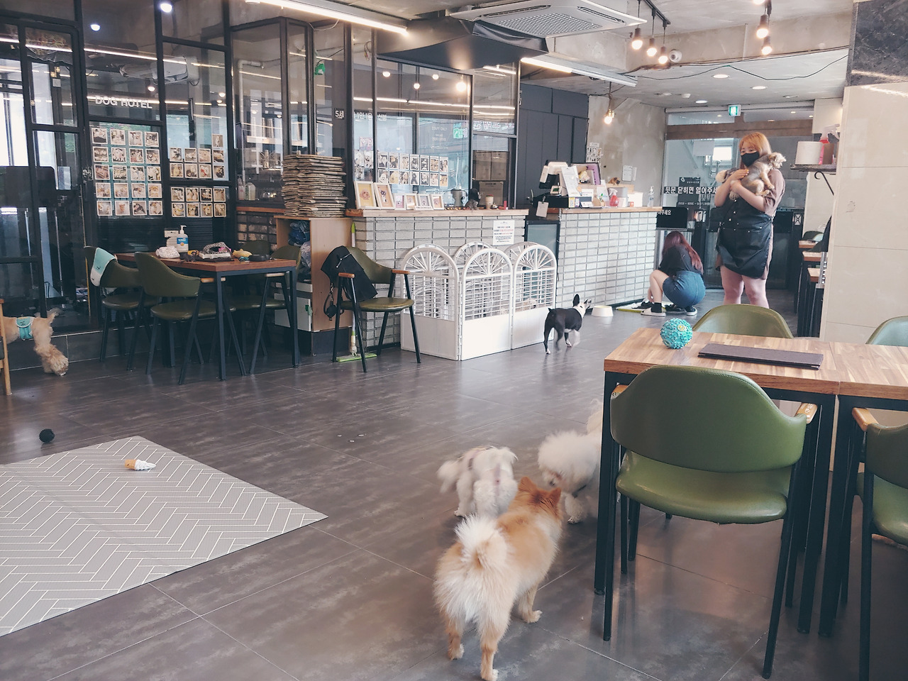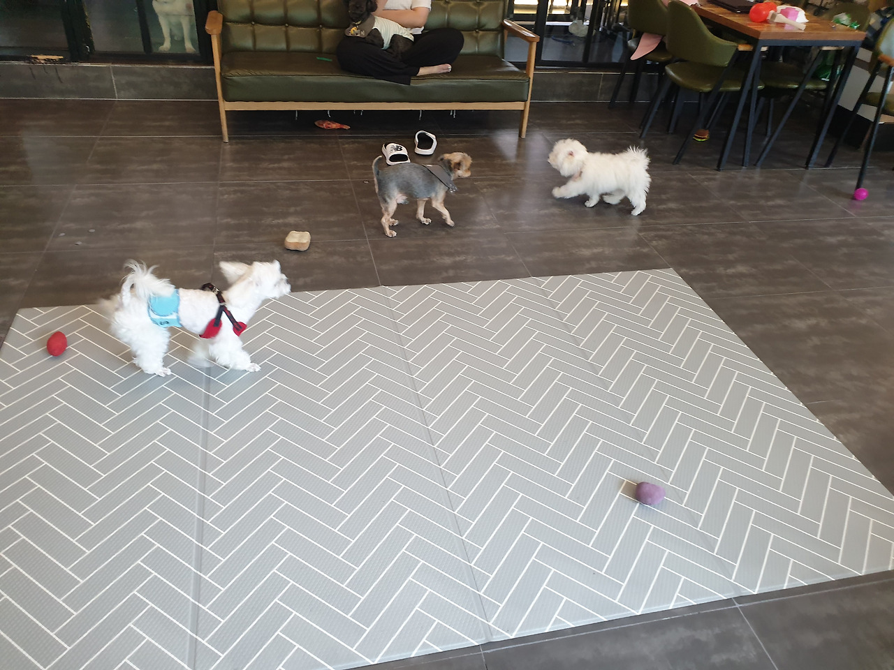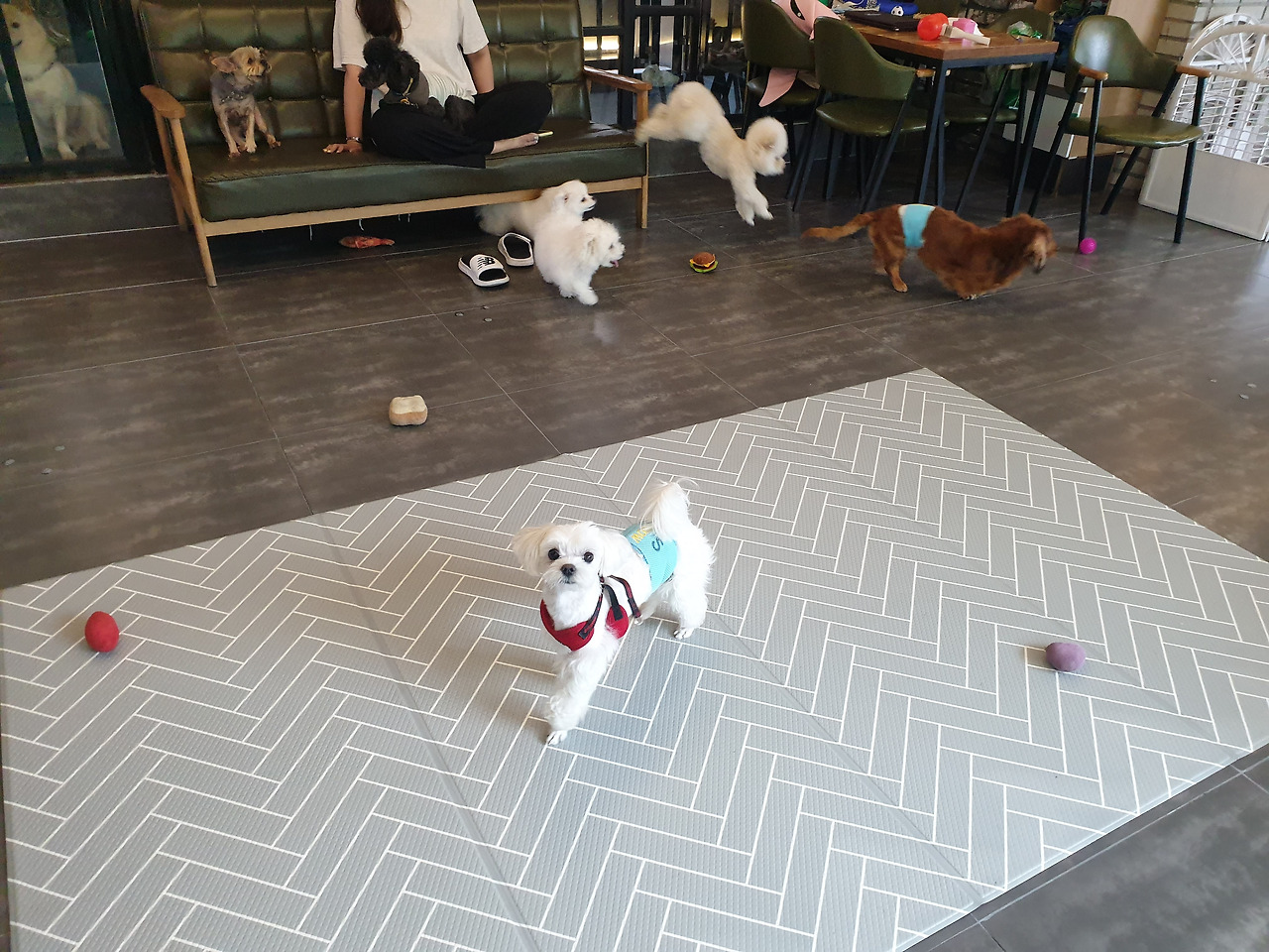 "마루가 작아서 그렇지 여기 아이들도 큰 개는 아니에요. 저희들은 13키로그램 이하 아이들만 입장할 수 있어요." 하신다. 하는 수없이 마루를 맡겨두고 잘 부탁한다는 말만 수 없이 하고 떨어지지 않는 발걸음을 옮겼다. 애견 카페에서는 10 분에 한 번씩 마루가 노는 모습을 사진으로 찍어 보내주셨다. 심지어 다른 애들에게 하도 들이대서 잠시 격리시켰다는 것도 알려주셨다.