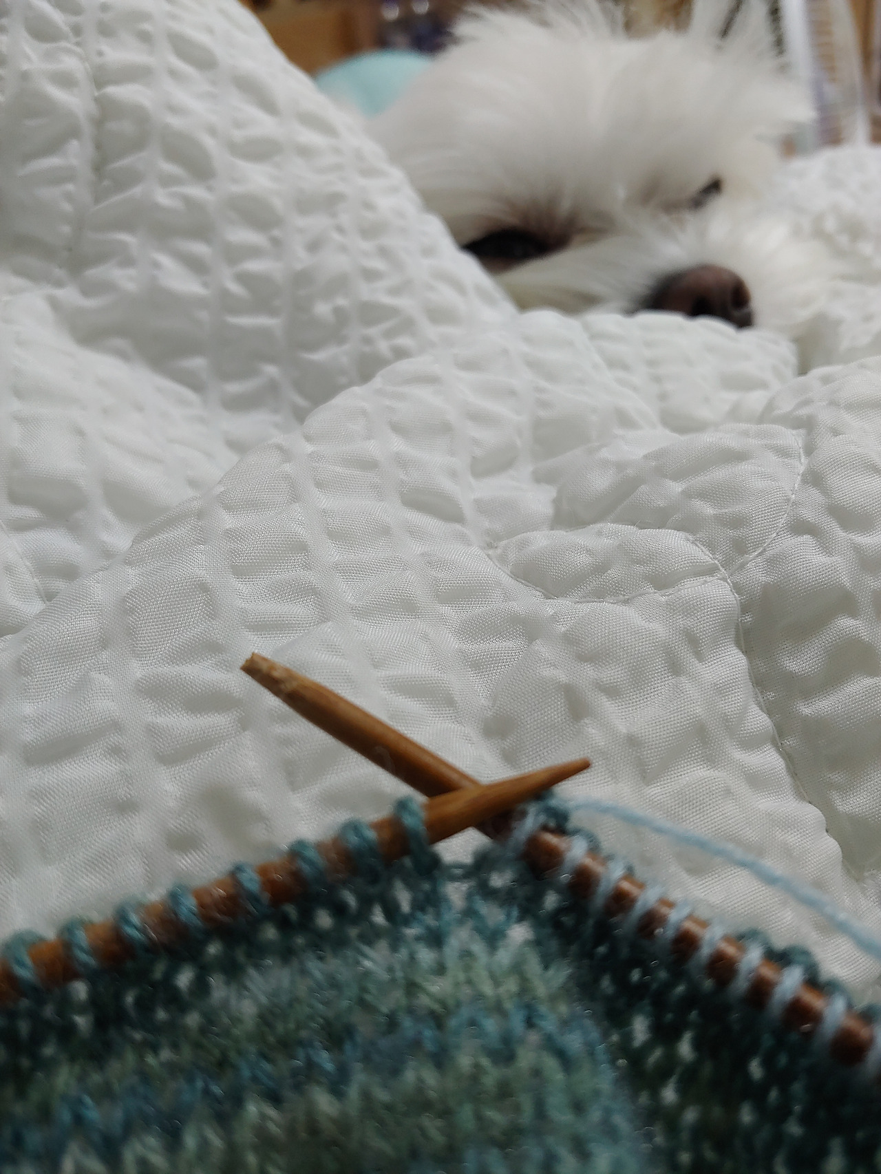 뜨개질을 시작했다. 예전에는 목도리나 숄만 뜨다가 요즘 탑 다운 스웨터 뜨는 영상을 보니 나도 뜰 수 있을 것 같아 재료를 사 왔다. 나는 소리에 예민한 데가 있어서 뜨개질할 때 쇠 바늘이 부딪히는 소리를 싫어한다. 그래서 나무 바늘을 골라 유튜브 영상에 따라 뜨기 시작한 것이다. 아침에 마루를 산책시키고 사료를 챙겨주고 글을 쓰다가 도, 티브이를 보다가도 생각나면 뜨개질을 했다. 아팠던 어깨도 많이 좋아졌고 뜨개질을 하면 생각이 정리되는 느낌이 들어서였다. 그런 나를 불만스럽게 바라보는 눈길을 못 본 척 하기는 쉽지 않았다.