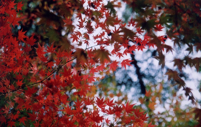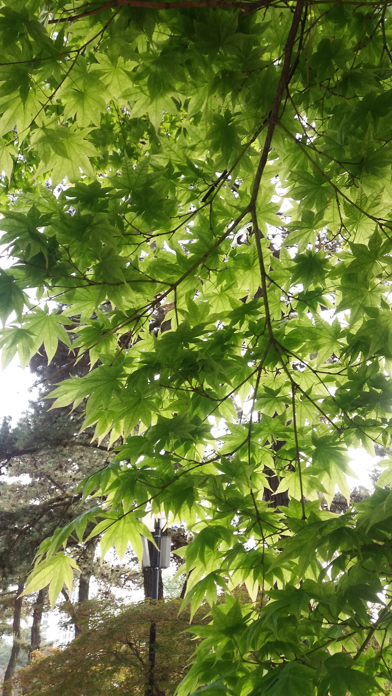그날도 찬란한 역광 모습을 연출하고 있는 단풍나무 한 나무를 올려다보았는데, 여기저기 가느다란 가지와 짙은 녹색의 잎사귀 근처에 무척이나 많은 송충이들이 포진해 있었다. 개별 생활을 좋아하는지 같은 곳에 두세 마리가 있는 경우는 없고 서로서로 떨어져 있었다. 낮잠을 자는지 움직이는 기미가 안 보였다.