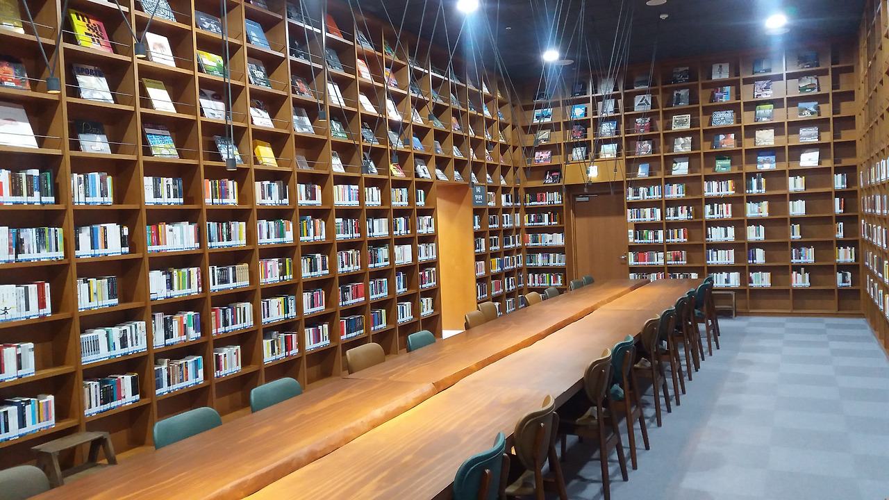 지어진 지 1년밖에 안 된 신식 건물이었다. 이용자들의 편의를 극대화해 시설을 만들었다고 할까. 서가는 빽빽하지 않았고 다양하고 멋진 책상과 의자가 곳곳에 배치돼 있었다. 컴퓨터도 넉넉했다. 거의 뒤로 누워서 책을 보는 곳도 있었다. 책을 좋아하는 사람들에겐 천국 같은 도서관이었다. 화장실 볼일 덕분에 1층에서 4층, 옥상까지 충남 도서관 전체를 호젓하게 둘러볼 수 있었다.