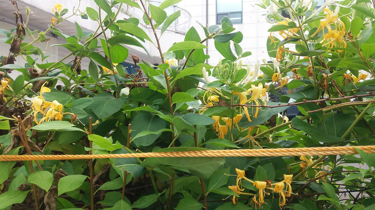 샛길로 빠지듯 골목길 들어가기 좋아하는 나는 정선중고등학교가 있는 골목으로 접어들었다. 은은한 향이 풍겼다. 인동덩굴 울타리다. 술을 단 리본 같다. 향내가 좋아 금방 자리를 뜨지 못한다.