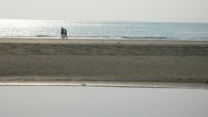물이 빠져나간 해수욕장 백사장에 드문드문 사람들이 거닐고 있었다. 나처럼 자축할 일이 있는지 모르겠다. 바닷가가 얼마나 넓게 펼쳐져 있는지. 지하철 공사 소리가 들리지 않을 정도로 깊게 바닷가 앞에 다가갔는데, 정말 어머니의 품처럼 다대포의 바다는 넓고 넓었다. 동해 바다가 깊다고 한다면 남해 바다는 넓다고 하겠다. 근처 몰운대 언덕은 우리나라에서 동해 바다와 남해 바다를 동시에 볼 수 있는 유일한 곳으로 알고 있는데, 나는 넓은 남해 바다에 더 반했다고 말하겠다.