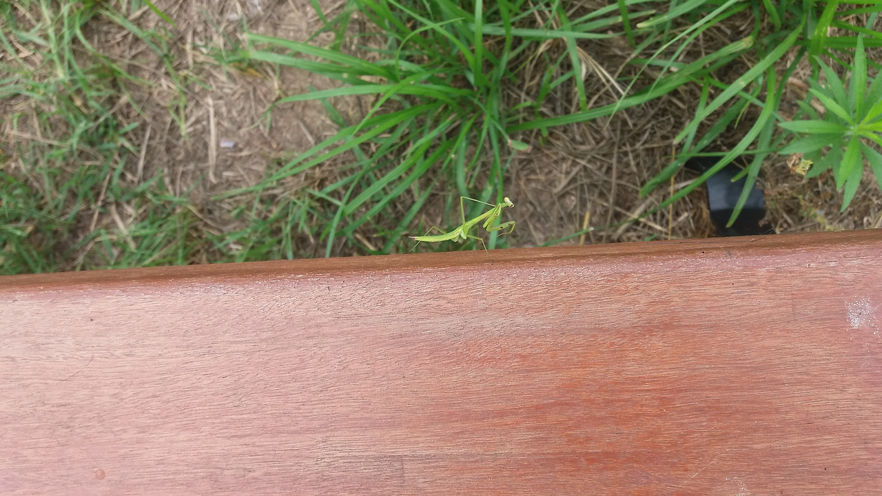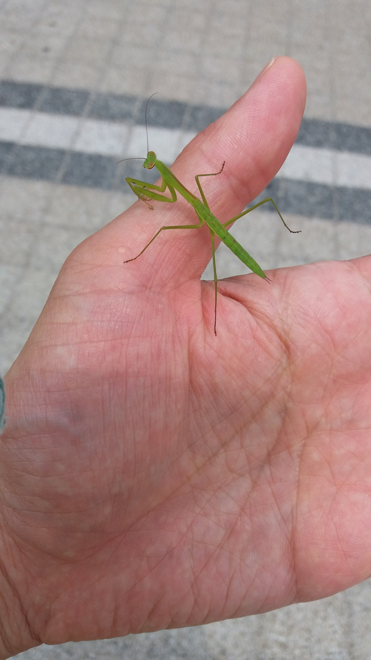 부여 백마강 앞에 있는 구드래조각공원에서의 일이다. 왼쪽 손으로 떼어내고 알았는데 놀랍기도 하고 신기하기도 했다. 사마귀를 오른손 손바닥에 올려놓아 보았다. 사마귀는 손바닥에 머물다 팔을 타기 시작했다. 왼쪽 손가락을 갖다 대 손가락을 타게 했다. 사마귀는 나를 떠나지 않았다. 계속 내 손과 팔을 탔다. 벤치에 앉아 왼손 오른손 손가락을 번갈아 갖다 대 타게 하면서 사마귀를 지켜보았다. 지나가던 아주머니들이 신기한 눈으로 쳐다봤다. “이 녀석이 가질 않아요.” 했다.