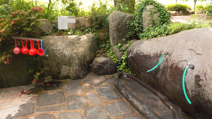 낙화암이 있는 부여 부소산성에 표를 끊고 입구에 들어서니 반갑게도 바로 앞에 약수터가 있었다. 무더운 날이었다. 수도꼭지를 틀고 약숫물을 막대 바가지로 받아서 마실 수 있게 돼 있었고 덕분에 시원하게 해갈할 수 있었다. 생수병에도 담았다.