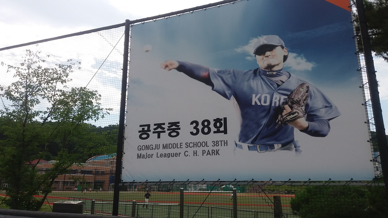 제민천 하류 근처에 공주중학교가 있다. 이곳을 지나가다 우연히 눈에 익은 이의 사진을 보았다. 박찬호 선수다. 류현진 선수의 올스타 참가 확정 뉴스를 접하던 날 이 사진을 보았다. 사진 뒤 운동장에서는 성인보다 키가 더 큰 공주중학교 야구부 선수들이 훈련을 하고 있었다. 1990년대에 박찬호 선수가 출전하는 경기를 KBS TV로 즐겨 보았더랬다. 그땐 그게 큰 즐거움이었다.