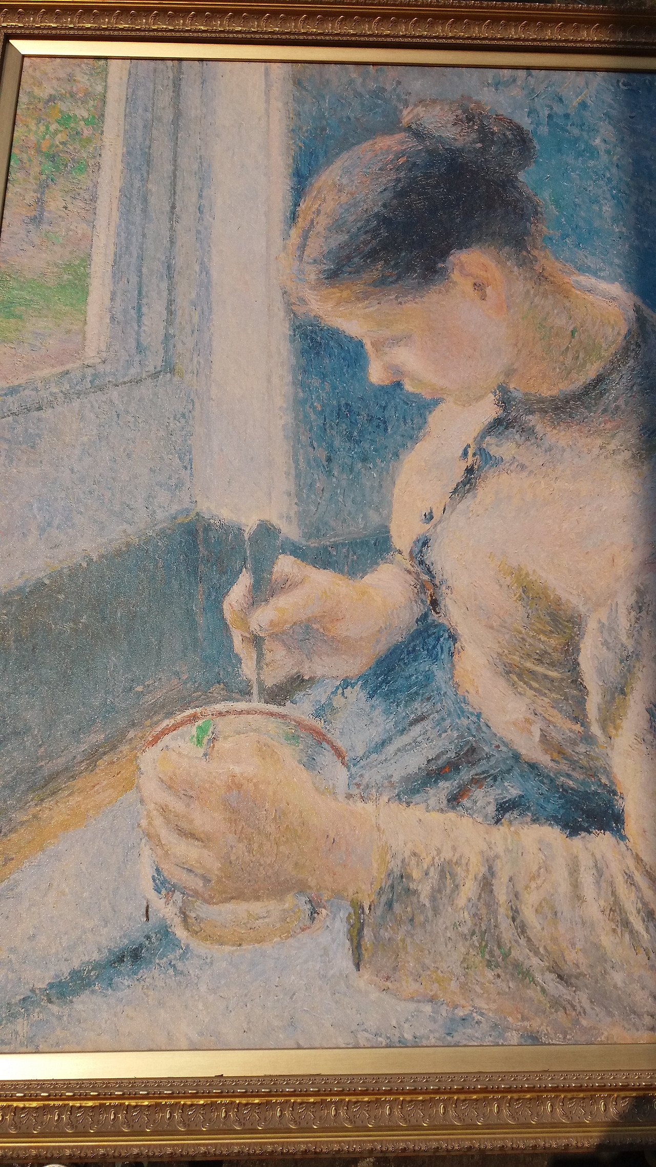 경춘선 철길 산책로 한쪽, 여름철 능소화나무가 끈덕지게 덩굴을 이루며 꽃을 피워대던 비스듬한 담벼락에 서양화가들의 그림 복사본이 큼지막한 액자에 넣어져 걸려 있다. 그중 한 그림에 주목했다. 프랑스 인상주의 화가 카미유 피사로의 ‘커피를 마시는 소녀 농부’다. 소녀의 옷차림과 창밖의 녹색 풍경이 봄날을 연상시킨다. 화가가 손 모양에 신경을 많이 썼다고 했는데, 농부 손이라서 그런지 참 크다. 그런데 이 그림에 더 주목한 것은 다른 이유가 있어서다.