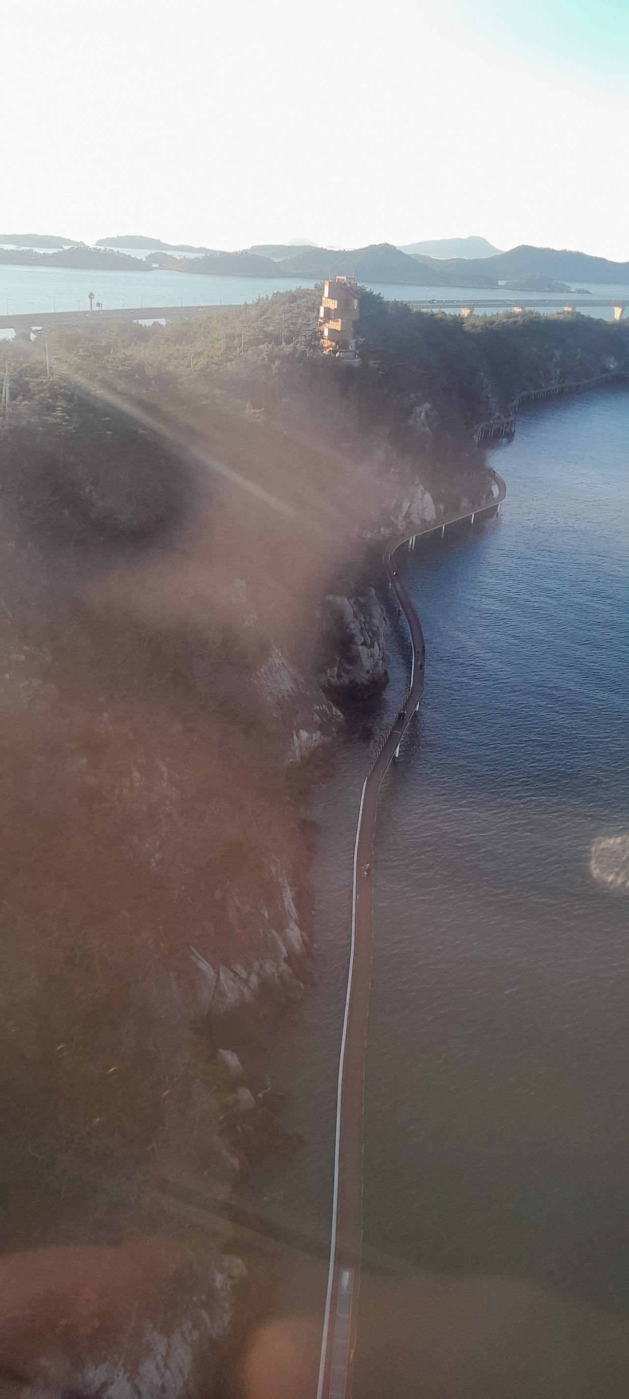 여행 철이 아니어서 그런지 탑승 안내 직원은 최대 열 명이 탈 수 있는 케이블카 한 대에 가족 서너 명 또는 연인 두 사람만 태워 보내기도 했다. 뜻밖에도 내게는 혼자 탈 수 있는 특권을 부여해 주었다. 20분 정도 나는 섬까지 하늘을 날아가는 한 마리 갈매기가 되었다.