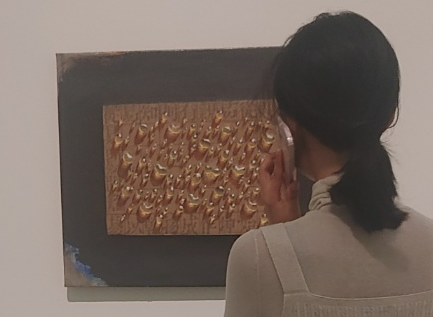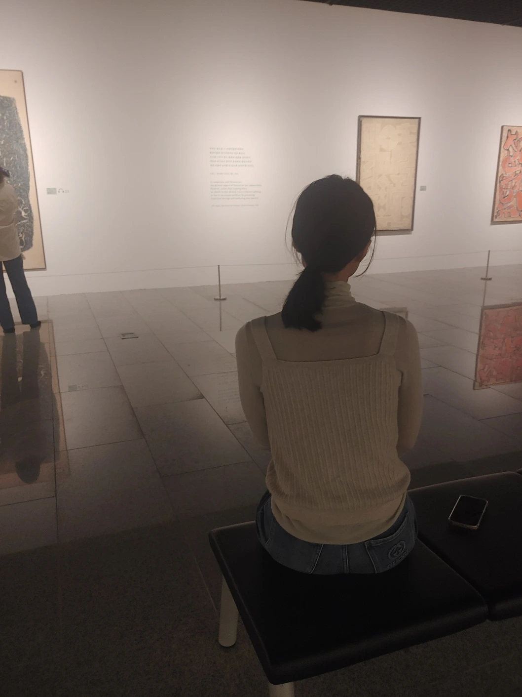 개인적으로 김창열의 작품이 가장 좋았다. 현대미술은 난해하지만 김창열의 물방울그림은 모르는 사람이 봐도 예쁘기 때문이다. 참고로 오른쪽 사진은 전화받는 모습이 아니다. 이어폰이 없어서 오디오 도슨트를 나만 들을 수 있는 볼륨으로 해 놓고 들었던 것이다.