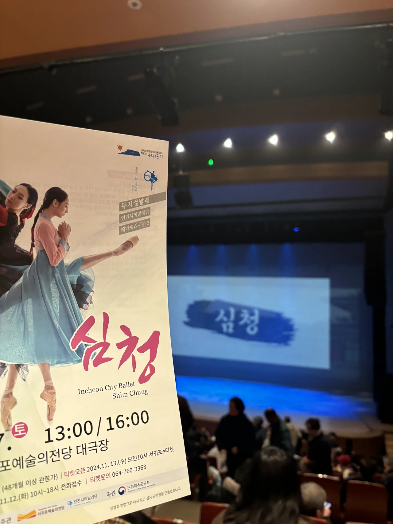 서귀포예술의 전당에서 전래동화 심청을 발레로 표현한 공연을 봤다.