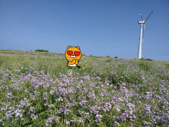 청보리밭 속에 유채꽃이 피어있는 곳도 있었다. 3월에는 노란 유채꽃만 봐서 '이게 유채꽃인가?' 싶었는데 모양이 유채꽃이었고 실제 유채꽃에는 흰색, 분홍색, 보라색도 있었다. 내가 보고 싶어 했던 꽃도 볼 수 있었고, 청보리밭에 피어있는 꽃들이 더 아름답게 느껴졌다.