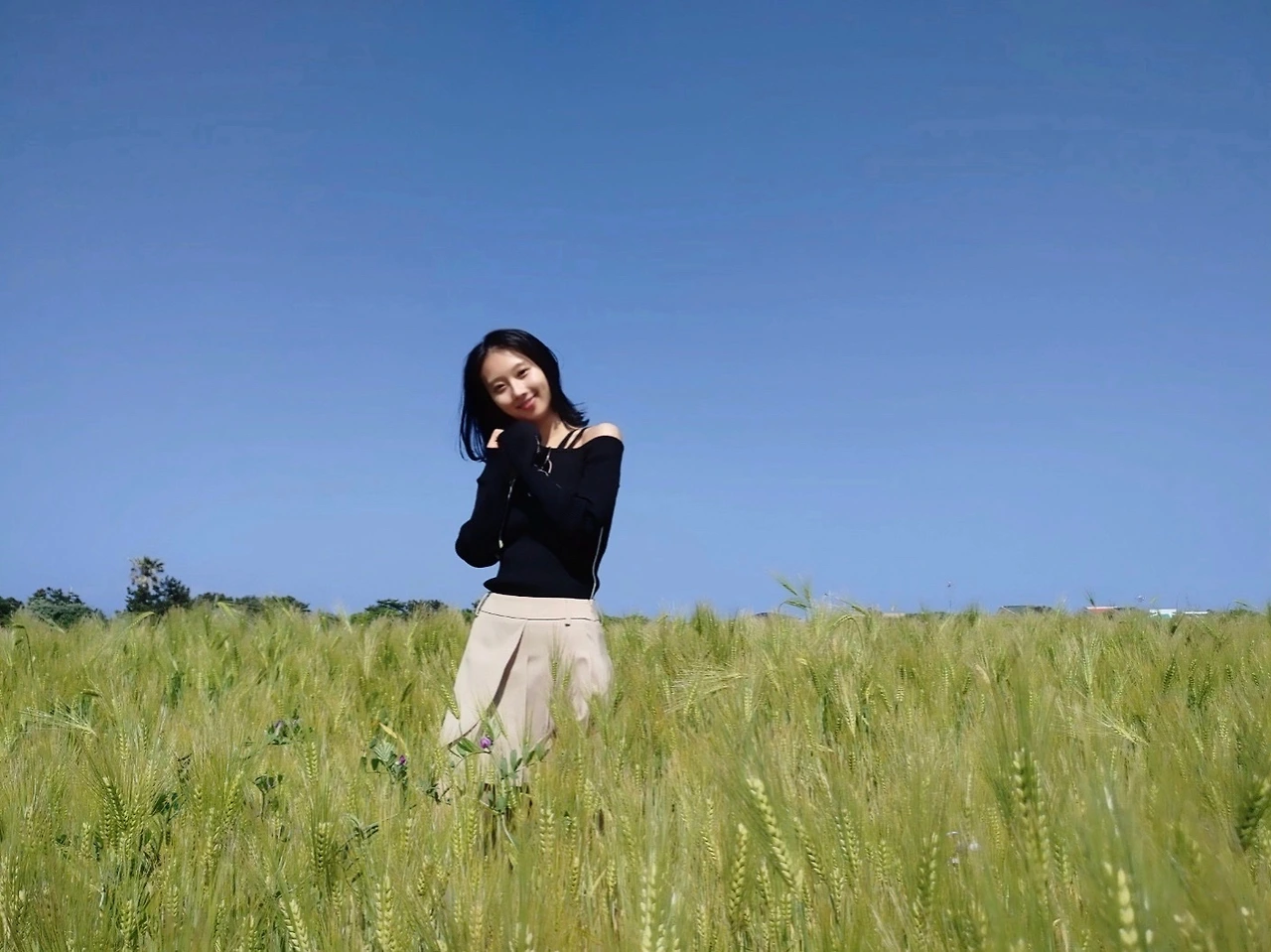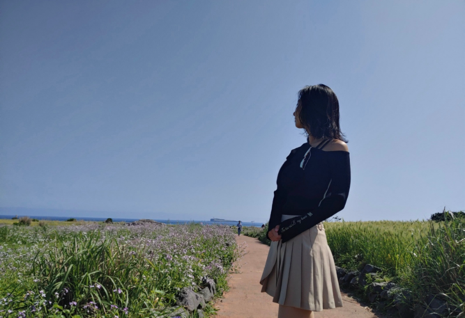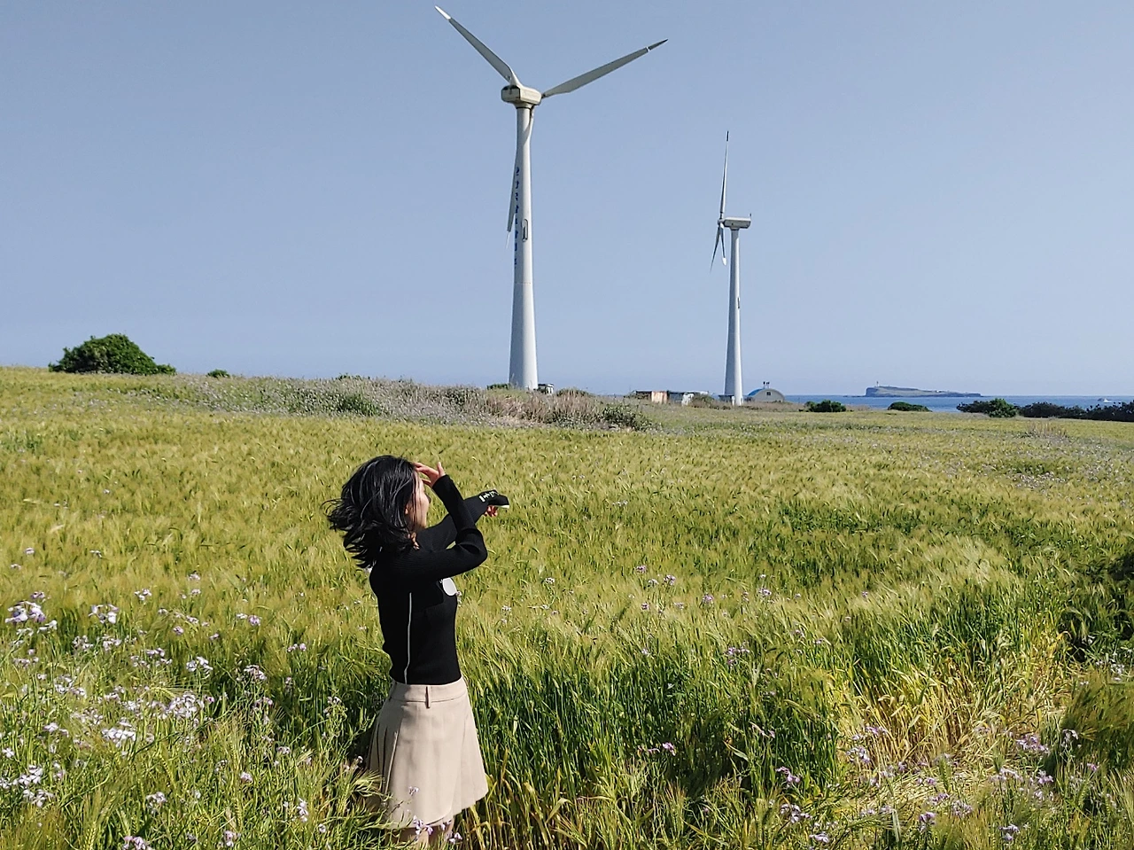 사실 청보리축제를 가기 전의 나는 솔직히 '청보리밭이 뭐 볼 게 있나? 나는 꽃밭이 더 좋은데'라는 생각을 했다. 청보리밭에 오기 전에 동백꽃과 유채꽃밭에 갔었고, 꽃이 예뻤으며 보리는 내가 밥으로 먹는 보리일 뿐이라고 생각했기 때문이다. 하지만 청보리밭에 오고 나니 오기를 잘했다는 생각이 많이 들었다. 초록으로 푸른 청보리밭과 맑게 푸르렀던 하늘이 경계를 이루며 어딜 가든 풍경이 예뻤고, 사진도 잘 나왔기 때문이다. 이날 날씨가 너무 좋았고, 특히 제주의 햇빛은 센 편이라 찍힌 사진에는 눈을 감고 있는 사진이 많았지만 그래도 예뻤다. 제주를 봄이나 여름에 오길 계획하는 독자분들이 있다면 선글라스를 챙기는 것을 추천한다.
