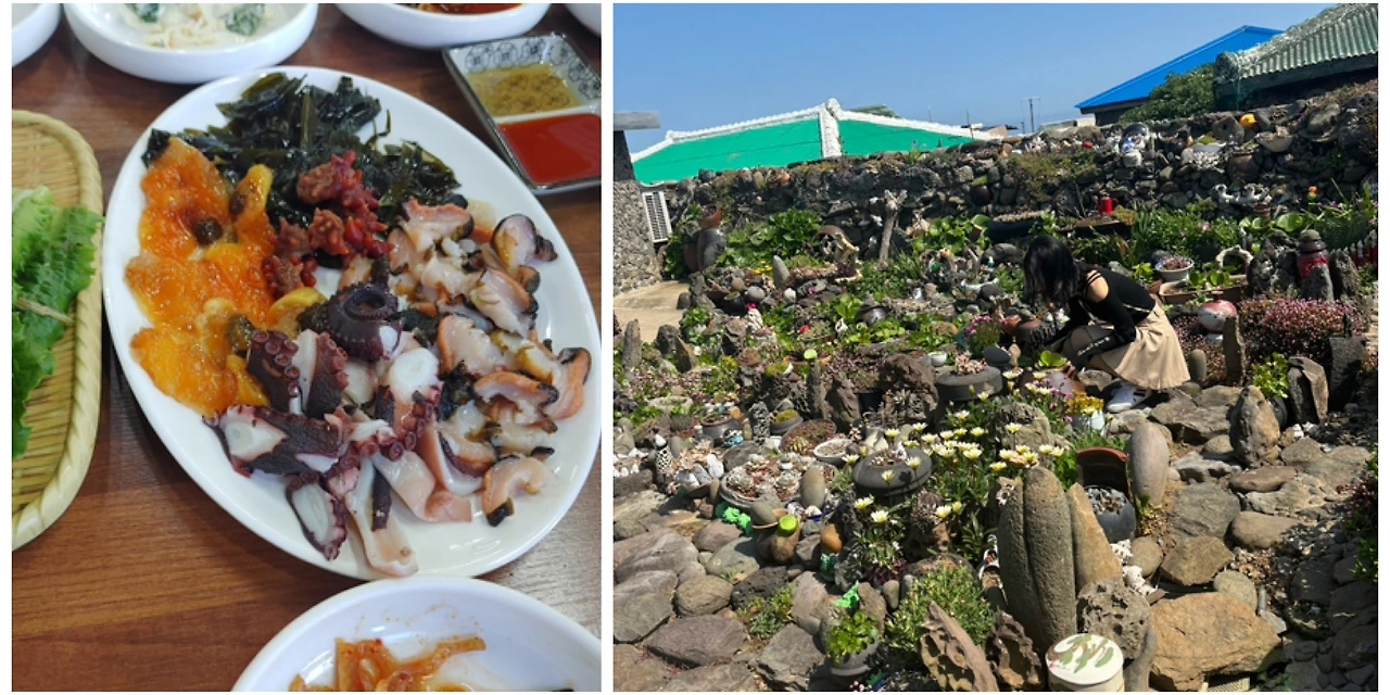 가파도에 도착해서 한 식당에 갔다. 한정식과 해산물을 먹었다. 식당에서 나오는 길, 예쁜 정원이 보였다. 용궁정식식당은 민박집과 같이 운영하고 있었는데 식당 주인께서 식당 앞에 이렇게 작은 정원을 꾸며놓고 계셨다. 제주스러우면서도 귀여운 감성을 느낄 수 있는 곳이었다.