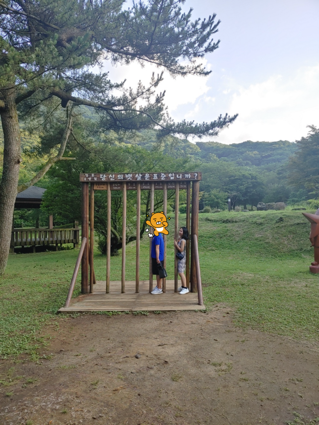 절물자연휴양림의 경우도 산책하기 좋은 곳이다. 그런데 사실 저 때 걸을 계획은 없었어서 원피스차림으로 갔다. 길에 '당신의 뱃살은 표준입니까?'가 있었는데 나는 살을 빼서 홀쭉이로 나오고 아빠는 표준으로 나왔다. 근데 사실 아빠는 살을 더 빼셔야 한다.