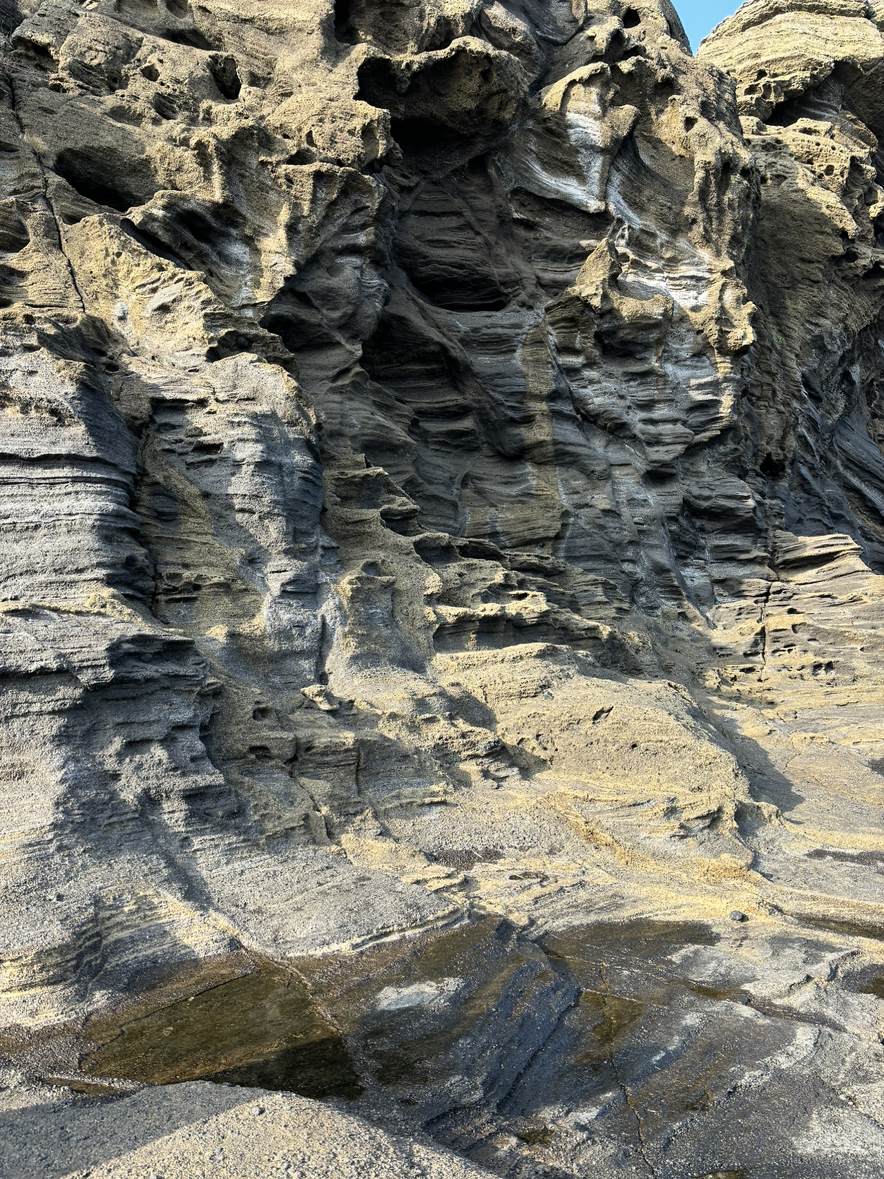 오늘은 화산폭발과 관련 있는 용머리해안 이야기를 해보고자 한다. 제주사람들의 말에 따르면 옛날에 거인이 한라산의 봉우리를 뽑아서 던져서 생긴 게 산방산이고 그 산방산이 자리를 잡으며 땅이 출렁거리며 생긴 게 용머리해안이라는 속설이 있다. 물론 과학적으로 맞는 이야기는 아닌데 재미있었다.