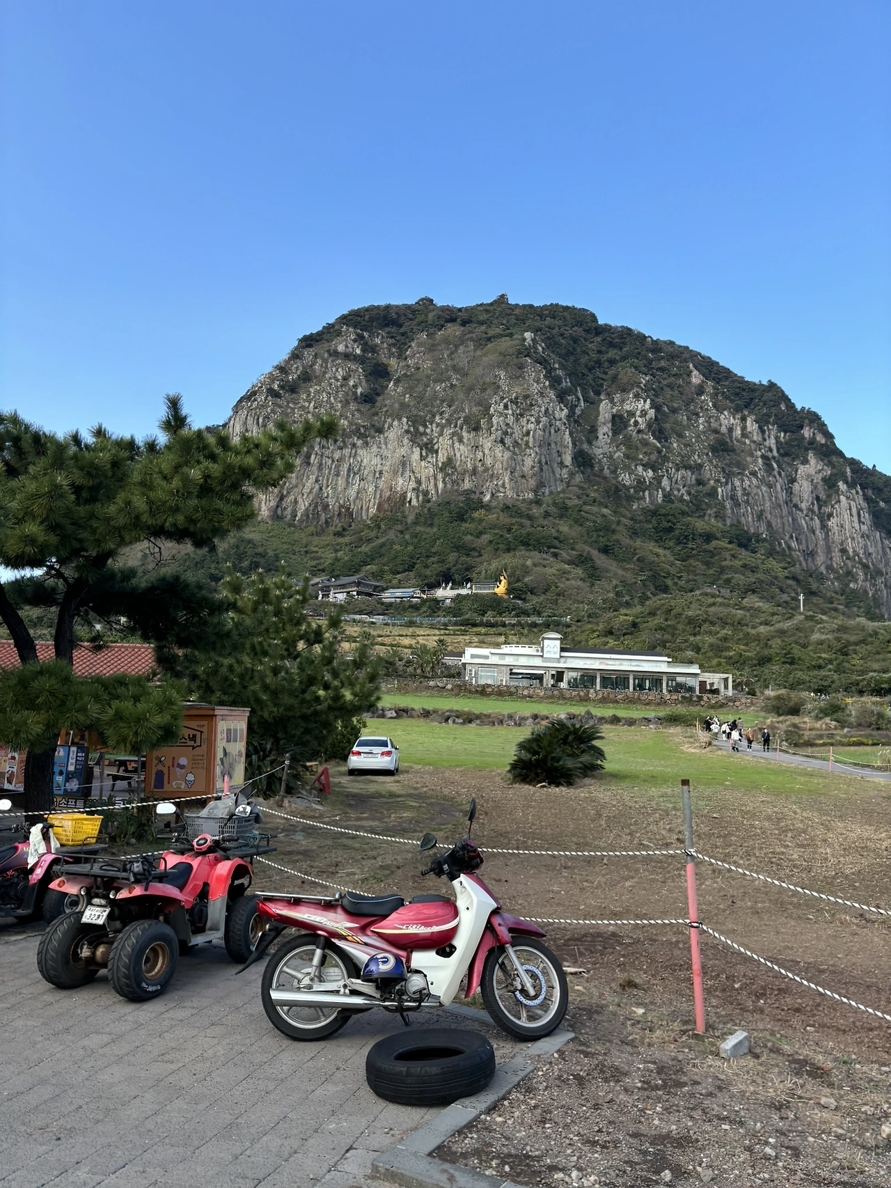 용머리해안은 산방산 옆에 붙어 있다. 3월에 갔을 때 유채꽃이 피었있던 때와 달리, 겨울의 산방산은 유채꽃 대신 풀이 있었다. 계절마다 다른 제주도의 매력인 것 같다.