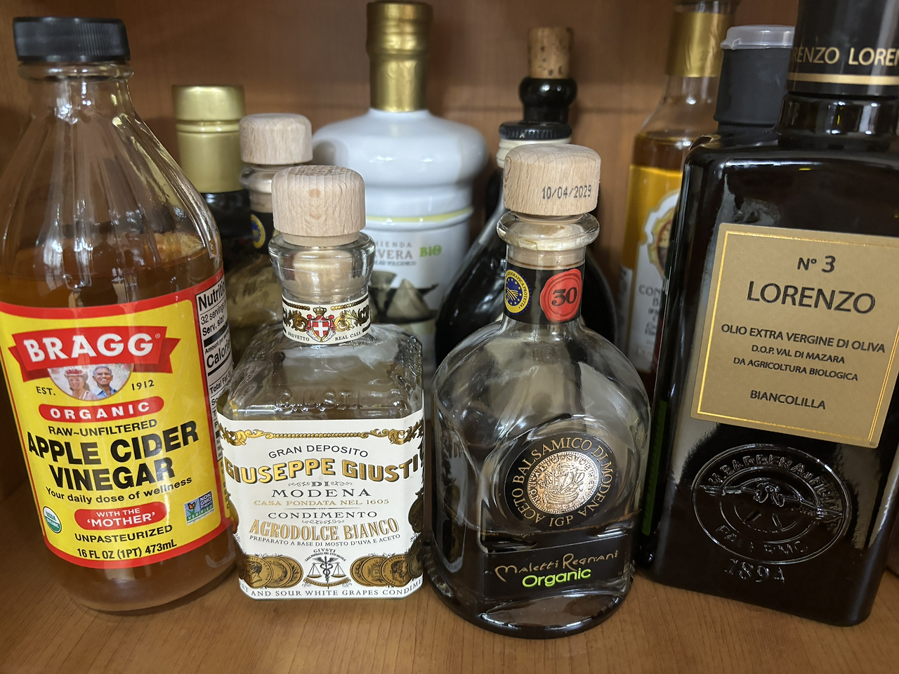 . 애플 사이다 비니거(이하 애사비), 화이트 식초, 그리고 발사믹에는 식초가 들어가 있다. 식초는 지방을 분해하며 칼로리가 낮아 다이어트에 도움이 된다. 식초는 아세트산이 들어가 탄수화물의 체내 흡수를 억제해 체중감소 효과를 지닌다.