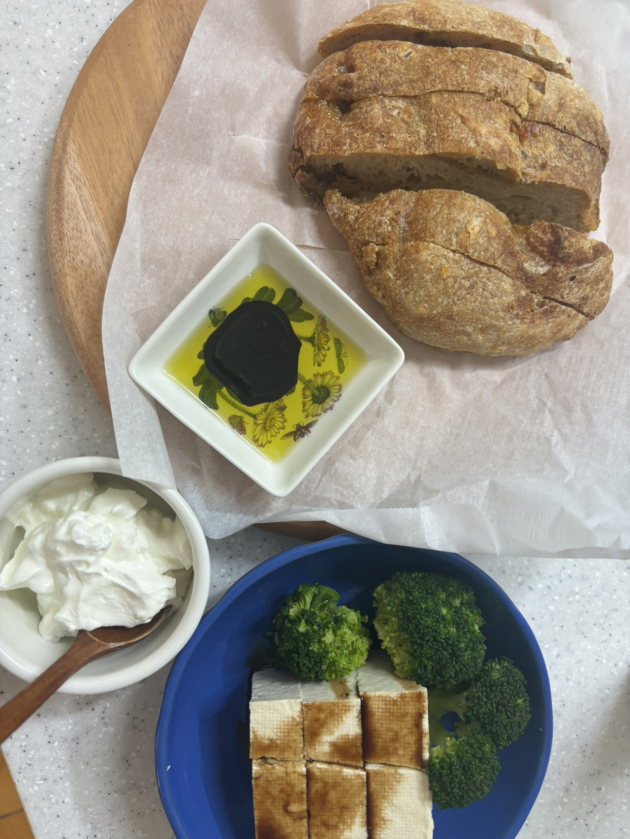 다음은 쌀빵으로 집에서 어머니가 직접 오븐에 구워주신 것이다. 쌀이나 현미 등을 이용하며 단백질 셰이크 용 파우더를 이용하면 단백질 빵도 만들 수 있다. 이 빵들을 발사믹과 올리브유와 함께해도 좋고 다이어트에 좋은 그릭요구르트에 발라먹어도 좋다. 집에서 직접 만들어 먹지 않아도 시중에 파는 것도 많으니 사서 먹어도 된다.