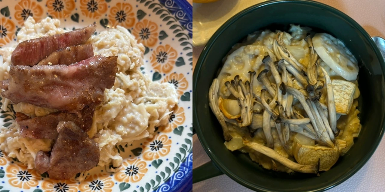 두 요리는 호박을 파스타처럼 만든 요리이다. 첫 번째 요리는 호박과 당근, 버섯을 면처럼 얇게 하여 바질페스토에 오일파스타처럼 만든 것이다. 바질페스토 자체에 엑스트라버진 오일이 많이 들어가서 오일파스타로 먹을 수 있다.