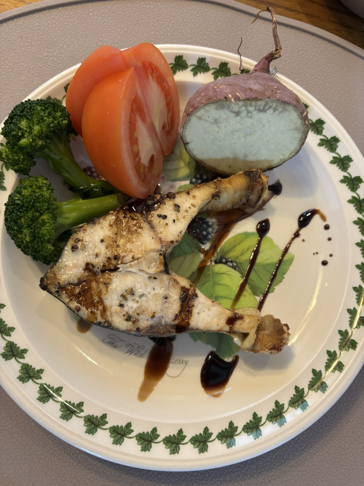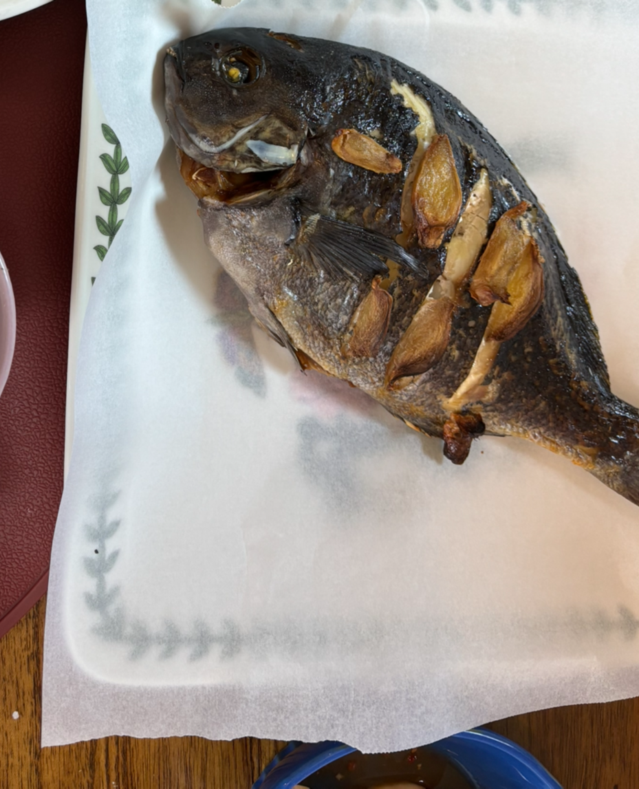 꼭 스테이크가 아니라 구이여도 된다. 벵에돔은 100g당 단백질이 20g, 지방이 1.4g 함유되어 있어 적절하다. 왼쪽 사진 속 벵에돔은 길이 25cm 두께 5cm (직접 자로 재 보았다)인데 저게 1인분이다. 벵에돔은 도미의 일종으로 제주에서 나는 생선인데 살이 부드럽고 두꺼웠다. 벵에돔은 흔하지 않으므로 다른 생선을 활용해도 좋다.