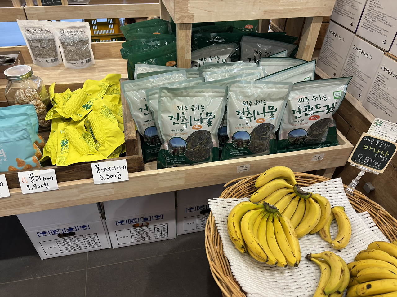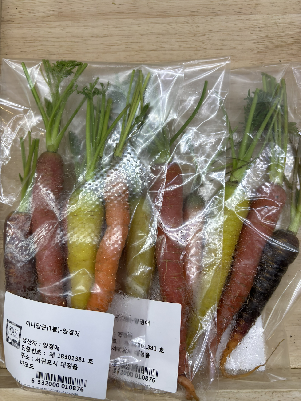 제주에서 유기농 재료를 구하기 위해 한살림을 들리곤 했다. 이곳에서는 유기농식품을 판매하는데 제주로컬푸드 코너도 따로 있다. 오른쪽 미니당근은 색색이 예뻐서 넣어봤다.