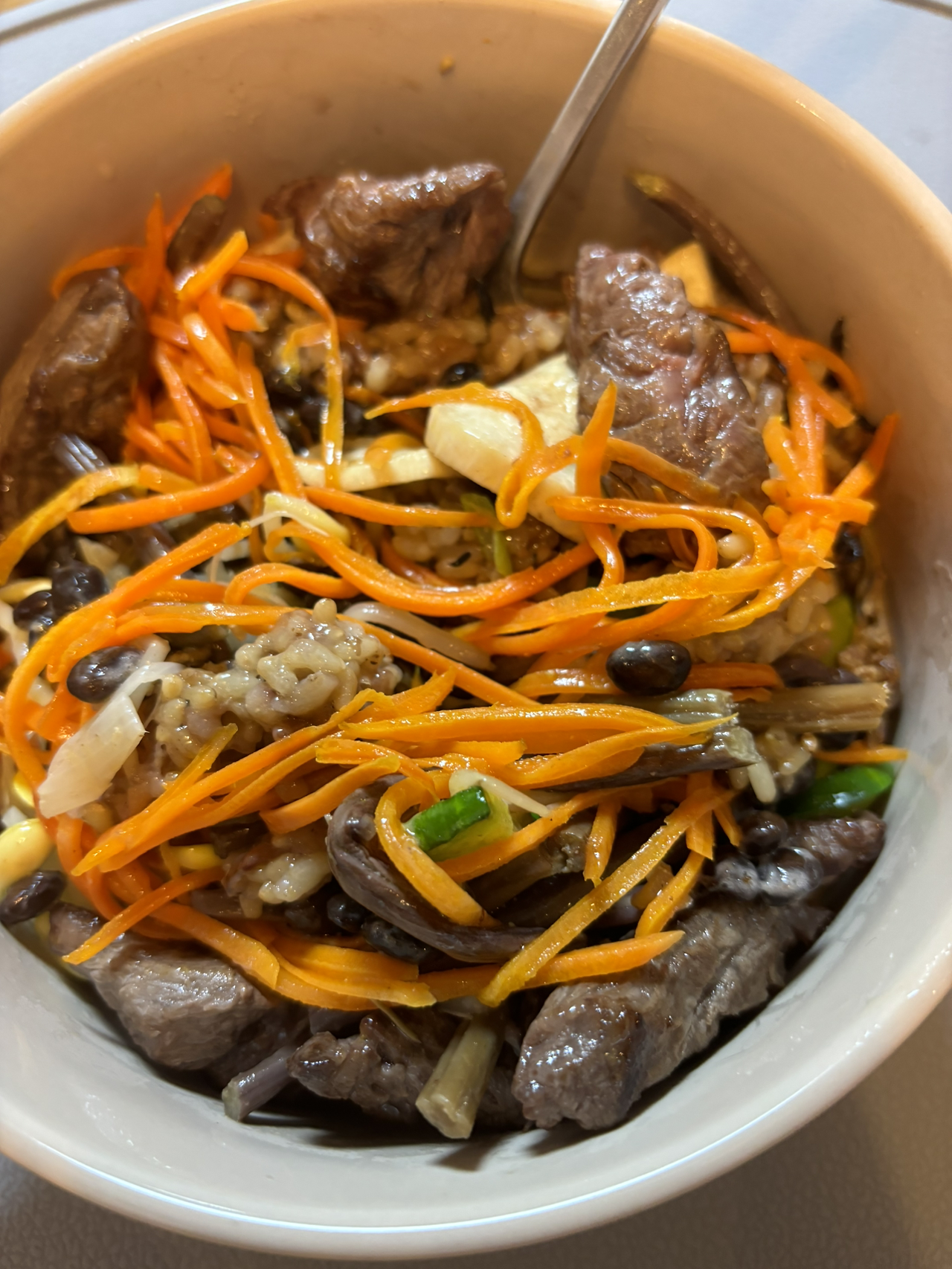 왼쪽 사진은 당근이 들어간 비빔밥이다. 비빔밥은 다이어트 편에서도 요리로 다룬 적이 있다. 당근은 눈건강에 좋고 칼로리가 낮아 건강에도 좋은데 비빔밥에 넣으니 색깔도 보기 좋았다.