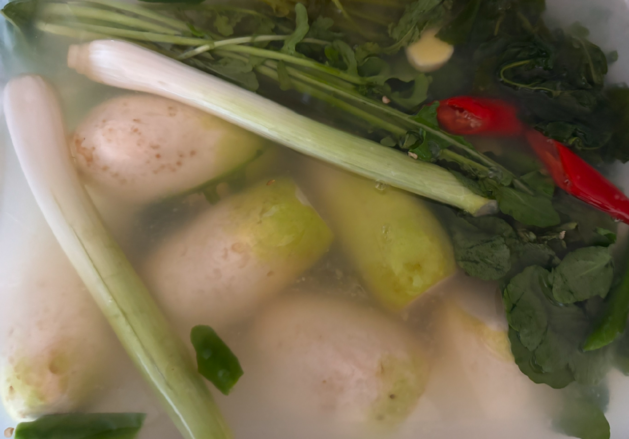 어렸을 때부터 소화 안될 때 먹곤 했던 동치미를 어머니가 제주무로 담가 기대되고 있다.
