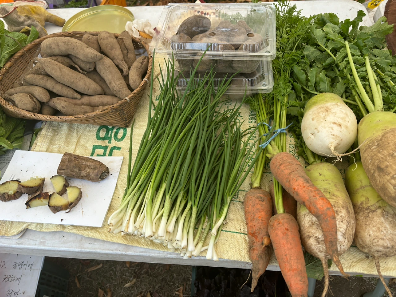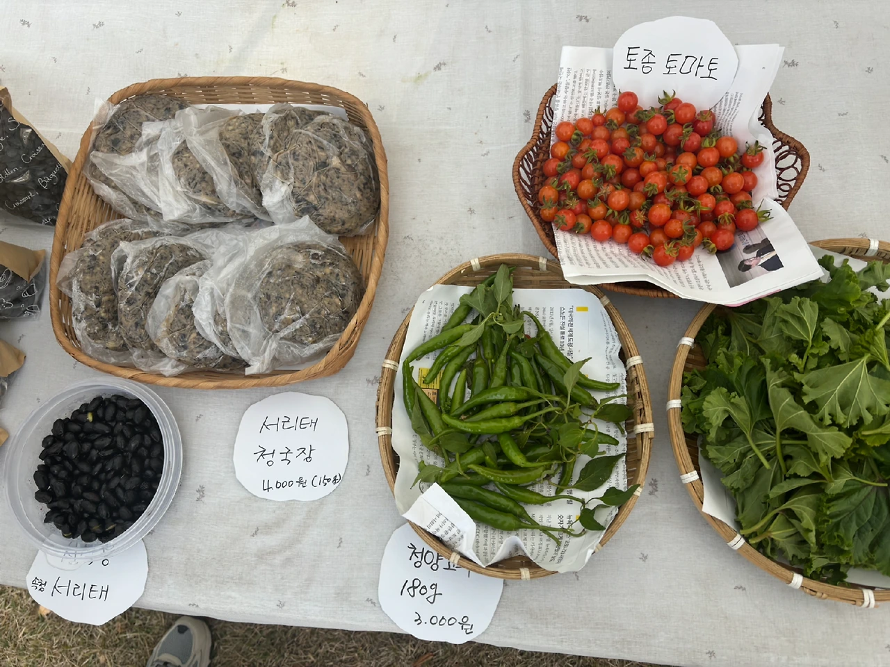 한살림 담을 매장 앞 야외에는 '자연 그대로 농민장터'라고 해서 직접 재배한 농산물을 판매하는 곳이 있었다