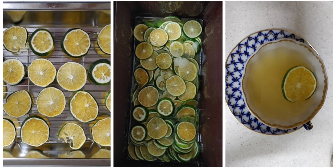 제주에 지인을 사귀면 운 좋은 날엔 귤과 생선을 받기도 한다. 생각지 못하게 너무 많은 청귤을 받아오신 어머니는 청귤로 청귤청을 담그셨다. 비율은 청귤:설탕:올리고당=1:0.5:0.5로 만드셨다고 한다. 몇 개의 청귤은 동결건조 시켜 차를 마실 때 살짝 띄워 카페에서 즐기는 듯한 느낌을 냈다.