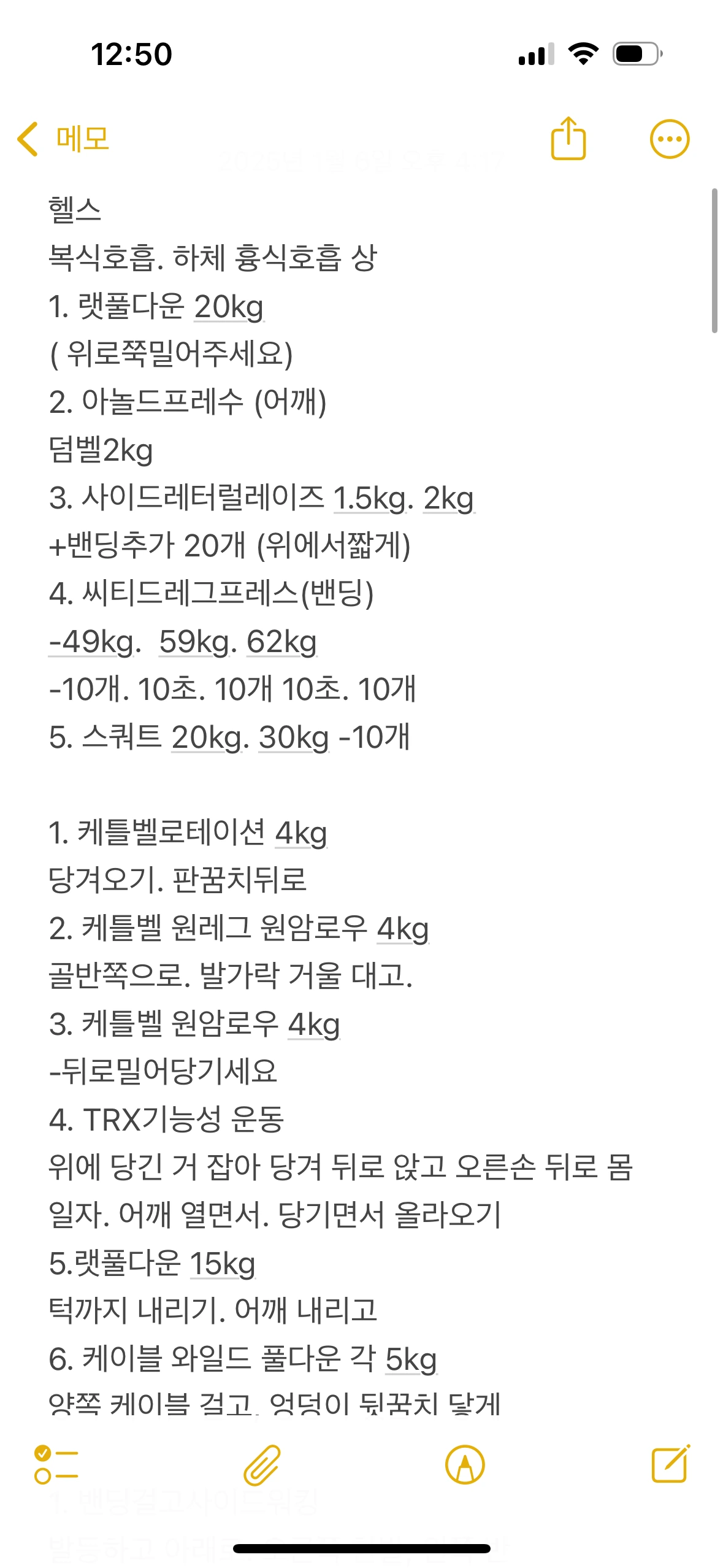 예를 들어 나의 하루 운동루틴은 하체보조운동-힙어덕션-레그프레스-랫풀다운-레터럴 레이즈이다. 모든 운동은 1세트당 20개씩 하고, 4 세트 한다. 머신 이름이나 사용법은 까먹을 수 있으니 배우면 적어놓고, 앱에서 추천해 주는 운동과 자세를 참고하기도 한다. 중량은 나의 현 상태에 따라 조절한다.