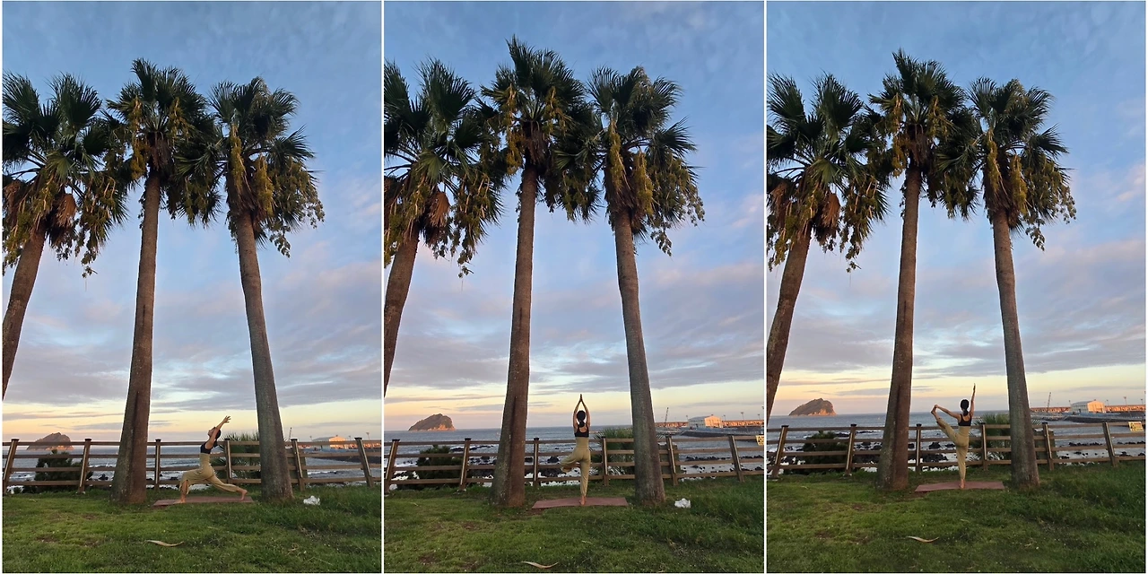다른 종목 설명을 돕기 위한 사진은 제주도 자구리 바당 앞에서 원데이클래스로 요가를 했던 모습이다. 사뭇 전문적으로 보이는 것과 달리 요가는 거의 못하는데 어렸을 때 스트레칭을 조금 했어서 유연한 편이다. 원데이클래스로 맞는 운동을 찾는 것도 방법이다.