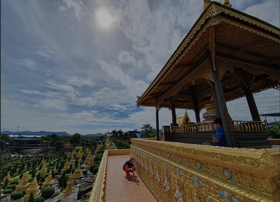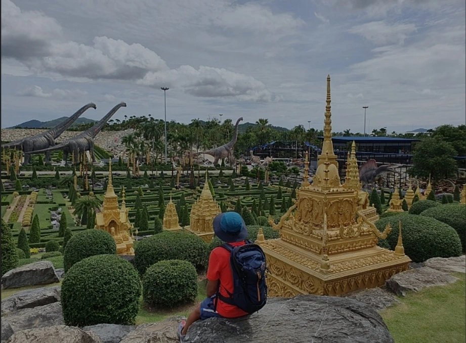 20km 넘게 직진만 하면서 걷는 것은 그 누구도 흔하게 경험할 수 있는 건 아니다. 별로 쉬지도 않고 걸었다. 많은 인내심이 필요한 코스였다. 정말 웃긴 건 걷다 보니 그저께 갔던 파타야 수상시장 입구를 지나고 또 직진을 하다 보니 어제 갔던 황금절벽사원으로 갈 수 있는 갈림길을 지나갔다. 그 두 지점을 지나 계속 직진하다 보면 드디어 농눅빌리지로 갈 수 있는 갈림길이 나오고 좌측으로 꺾자마자 농눅빌리지 전용 진입로 같은 깨끗하게 정비된 다른 느낌의 길이 시작된다