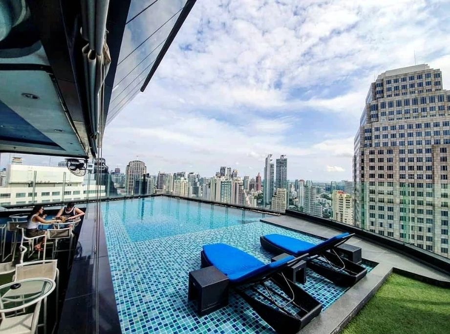 창밖의 도시 풍경이 정말 마음에 들었다. 짐을 풀고 호텔 루프탑에 있는 야외수영장을 구경하기 위해 올라가 봤다.