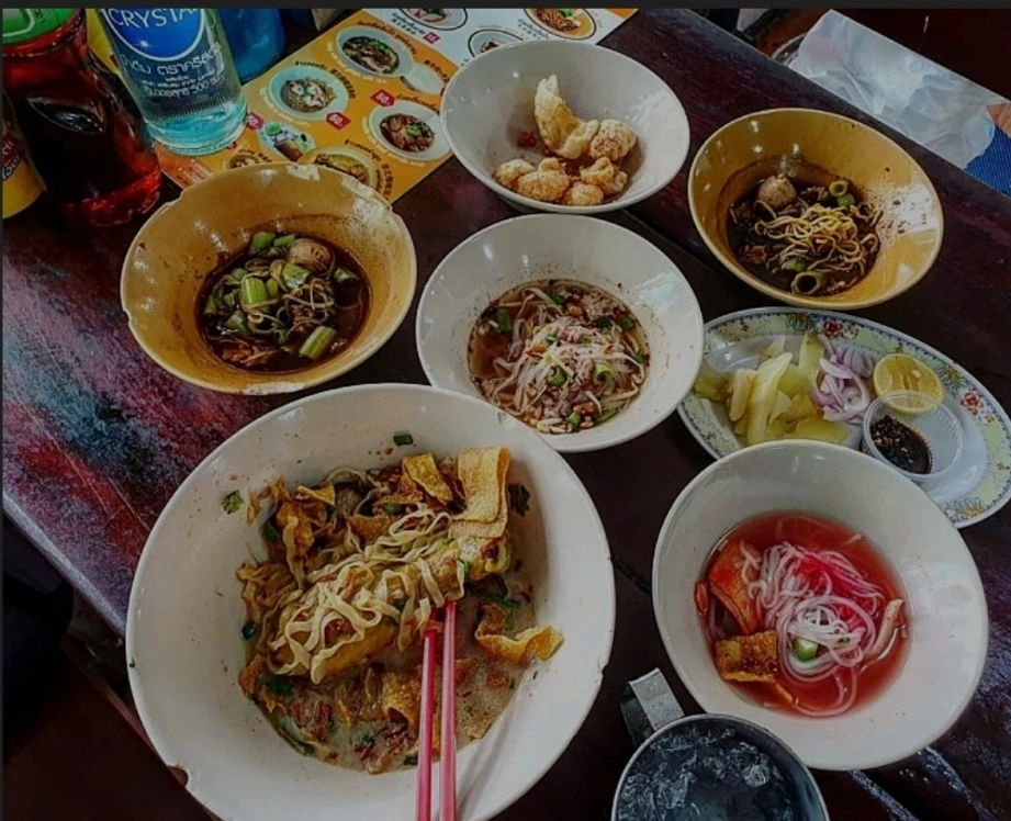 보트누들: 돼지고기와 잘게 썰은 각종 야채와 향신료로 만든 국물에 국수를 첨가해서 만든 태국식 국수다. 강과 늪, 운하가 많은 지리적 특성상 보트가 일상적인 교통수단이었으며, 보트 위에서 비교적 간단한 조리법으로 판매할 수 있는 국수를 팔며 '보트누들'이라는 붙었다. 그릇당 10밧~15밧(400~500원)으로 저렴해 여러 가지 맛을 맛볼 수 있어 외국인들에게도 많이 알려졌다.